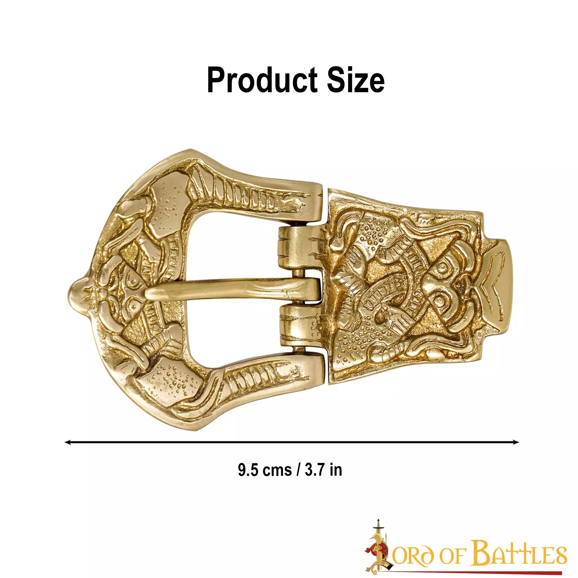 Destaca como un auténtico nórdico de tu clan con esta hebilla vikinga de latón de intrincado diseño, bien adornada con ornamentadas ilustraciones celtas. Está bien hecha para tu próxima recreación y trajes LARP.