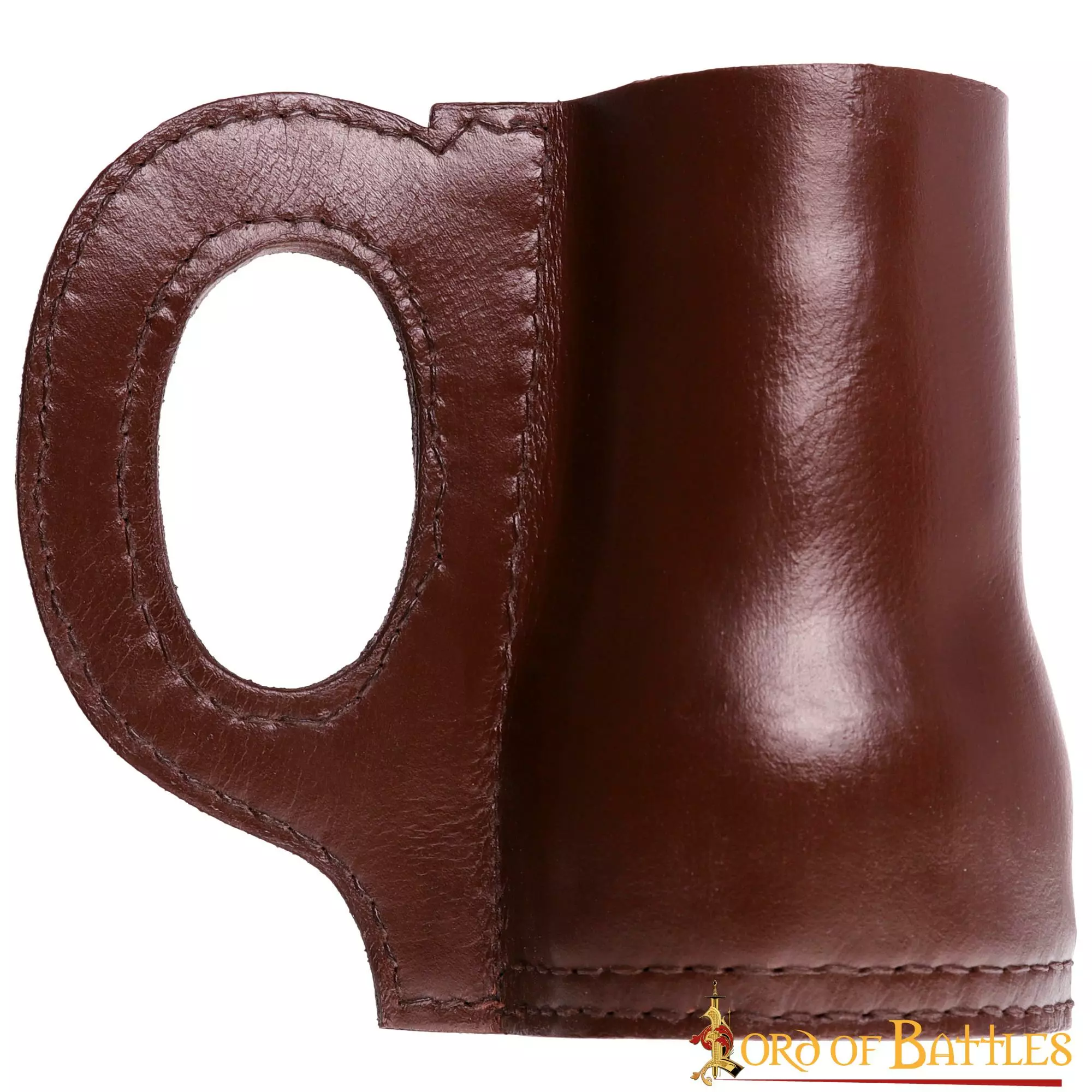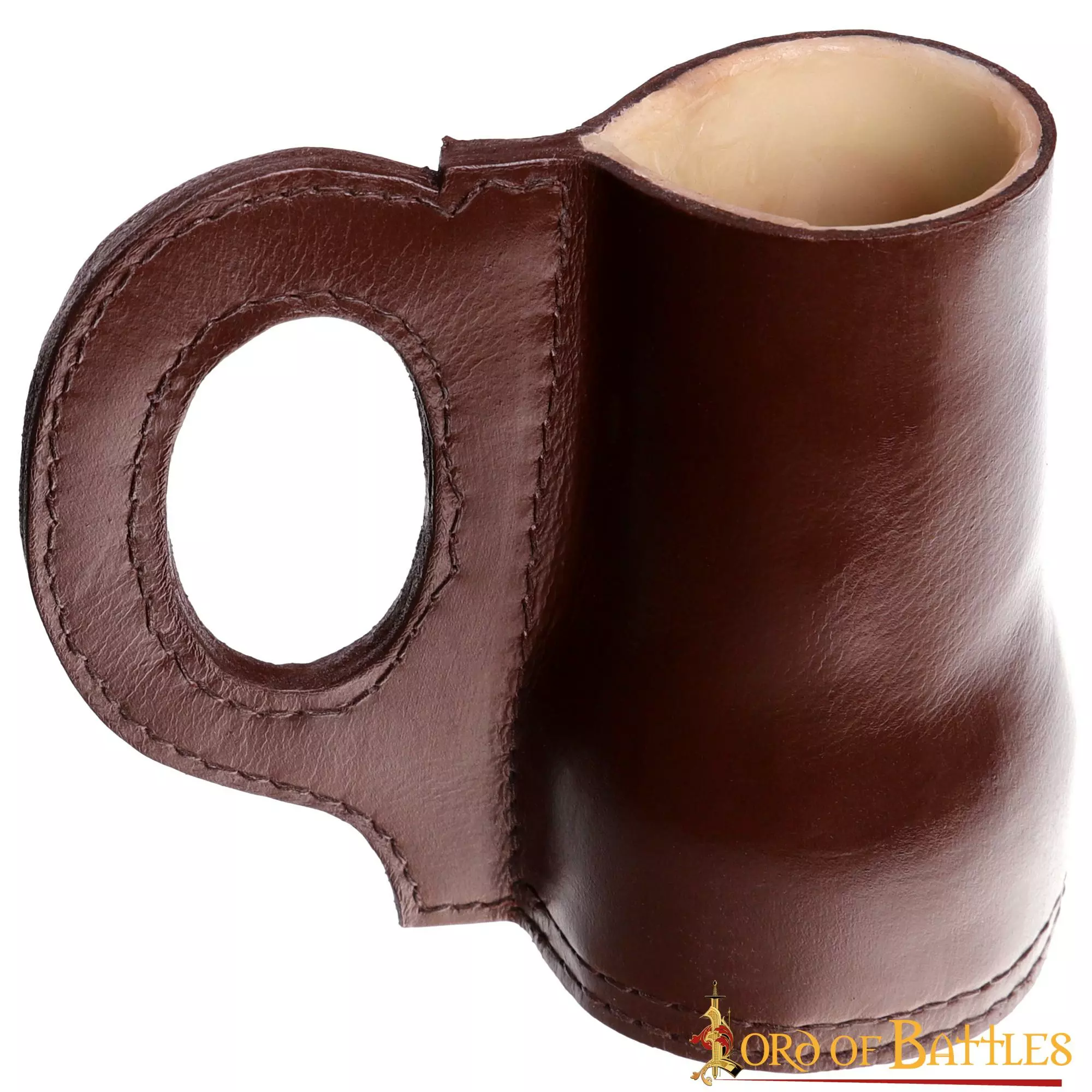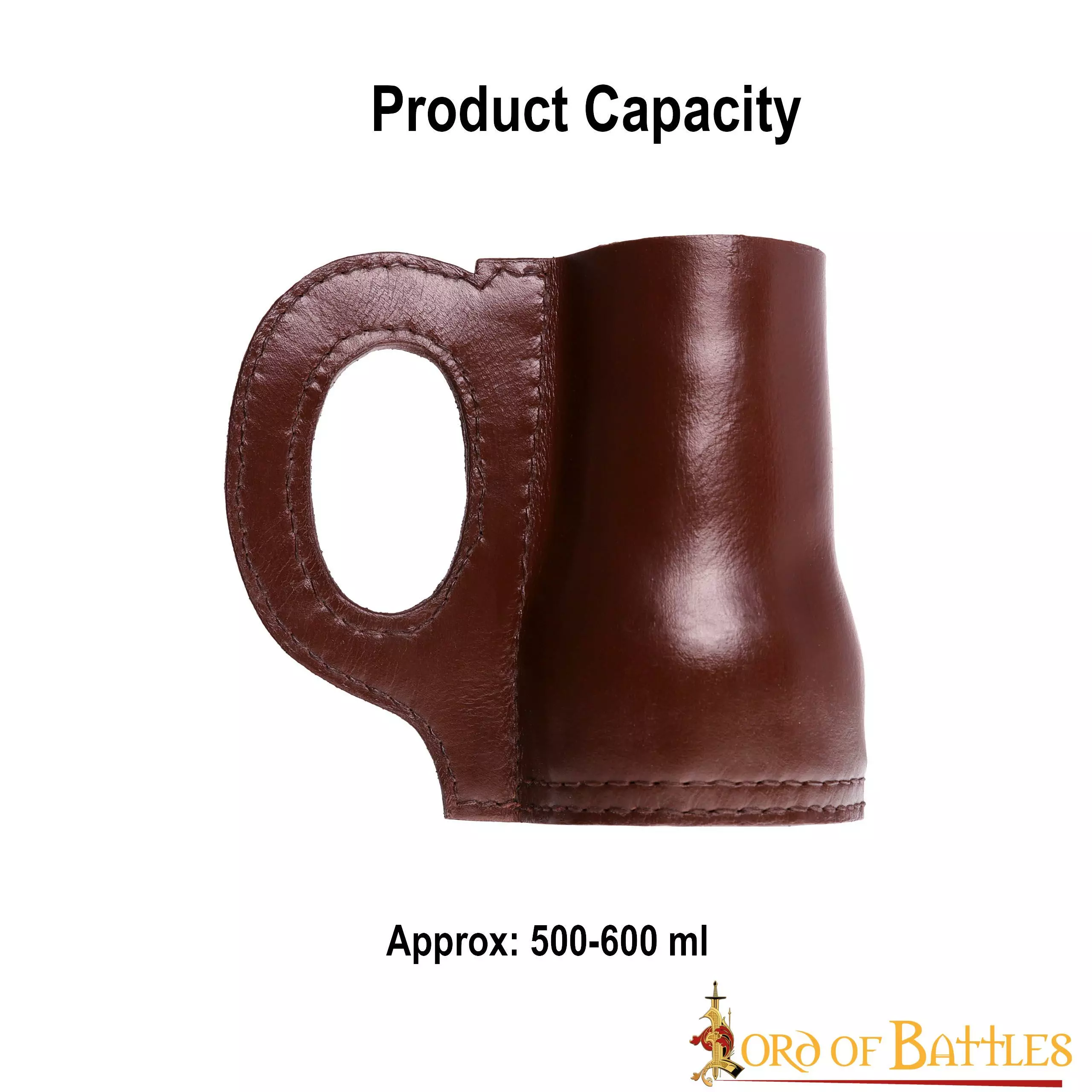 Está meticulosamente fabricado a mano con resistente CUERO DE GRANO SUPERIOR y forrado con resistente cera de abeja en el interior. Mide unos 15 cm de alto, por lo que caben unos 500-600 ml de sus deliciosas cervezas.