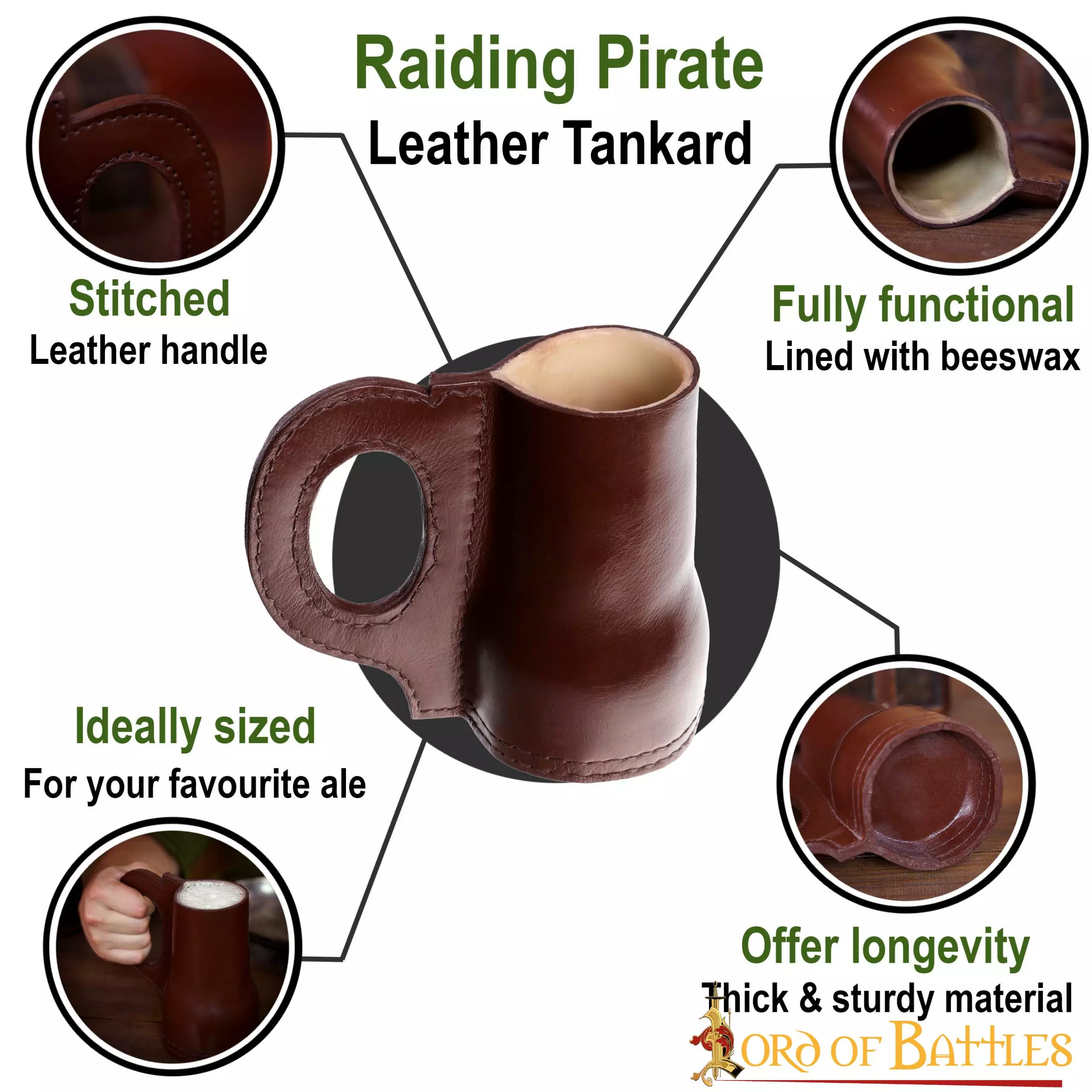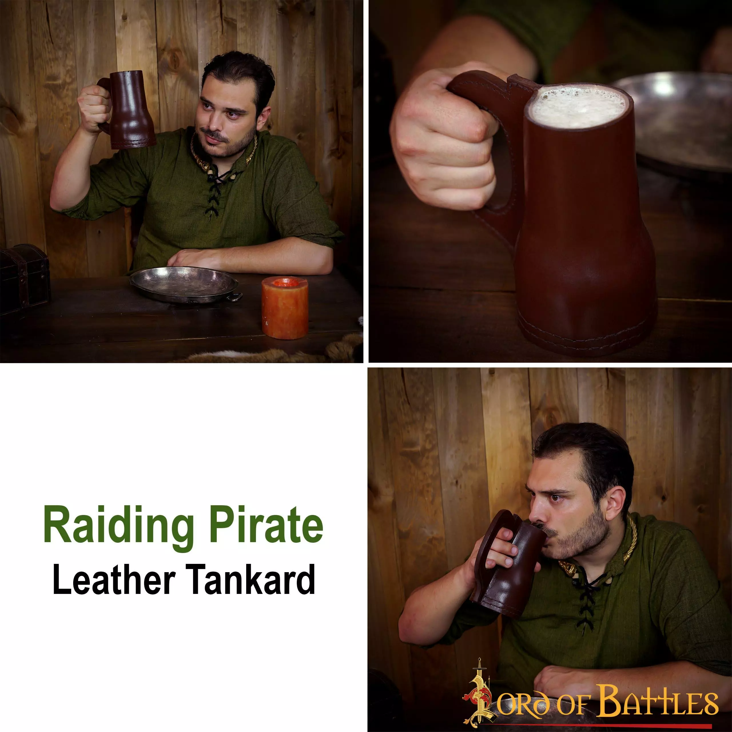 Sentado en su camarote, le gusta saborear su cerveza recién hecha en nuestra robusta jarra de cuero. Después de todo, ¿qué necesitaría un pirata al final de sus exitosas incursiones?