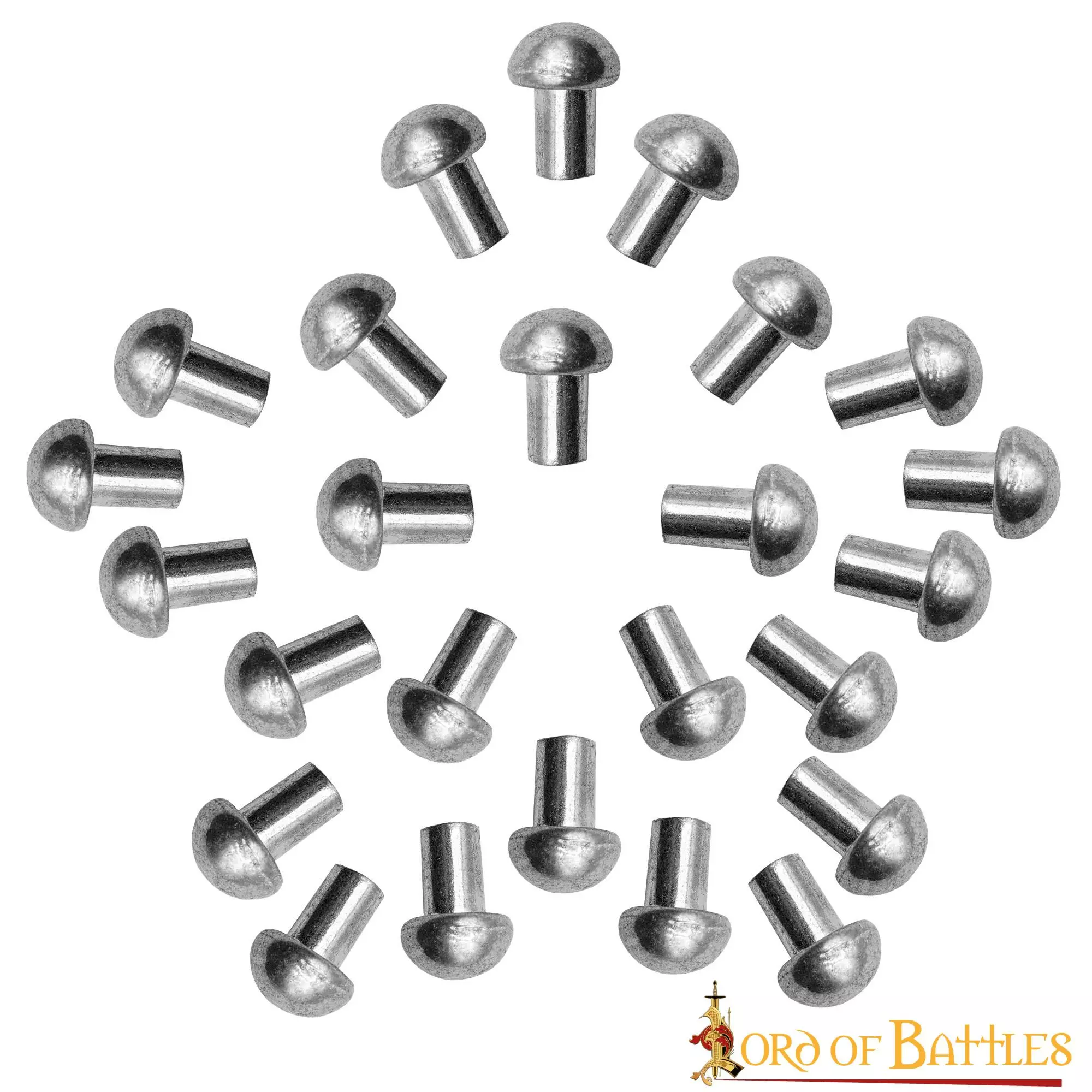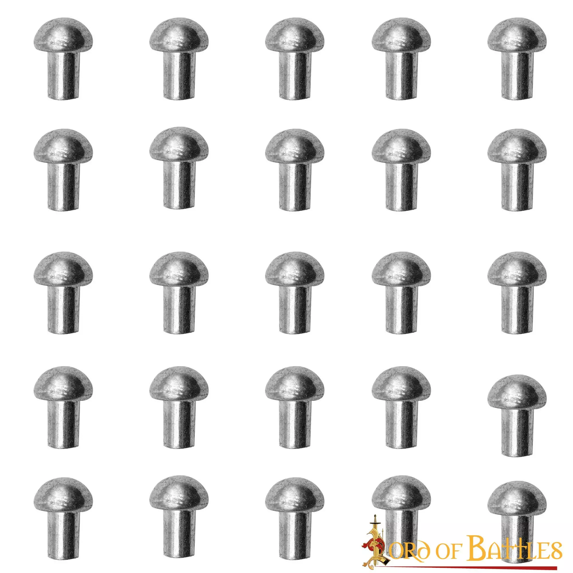 Estos pequeños RIVETS CON CABEZA DE SETA están fabricados en ACERO MILITAR resistente, por lo que son muy robustos y duraderos. La longitud de cada remache (sin incluir la cabeza) mide aproximadamente 10 mm (1 cm). Estos remaches vienen en un utilitario juego de 25 piezas.
