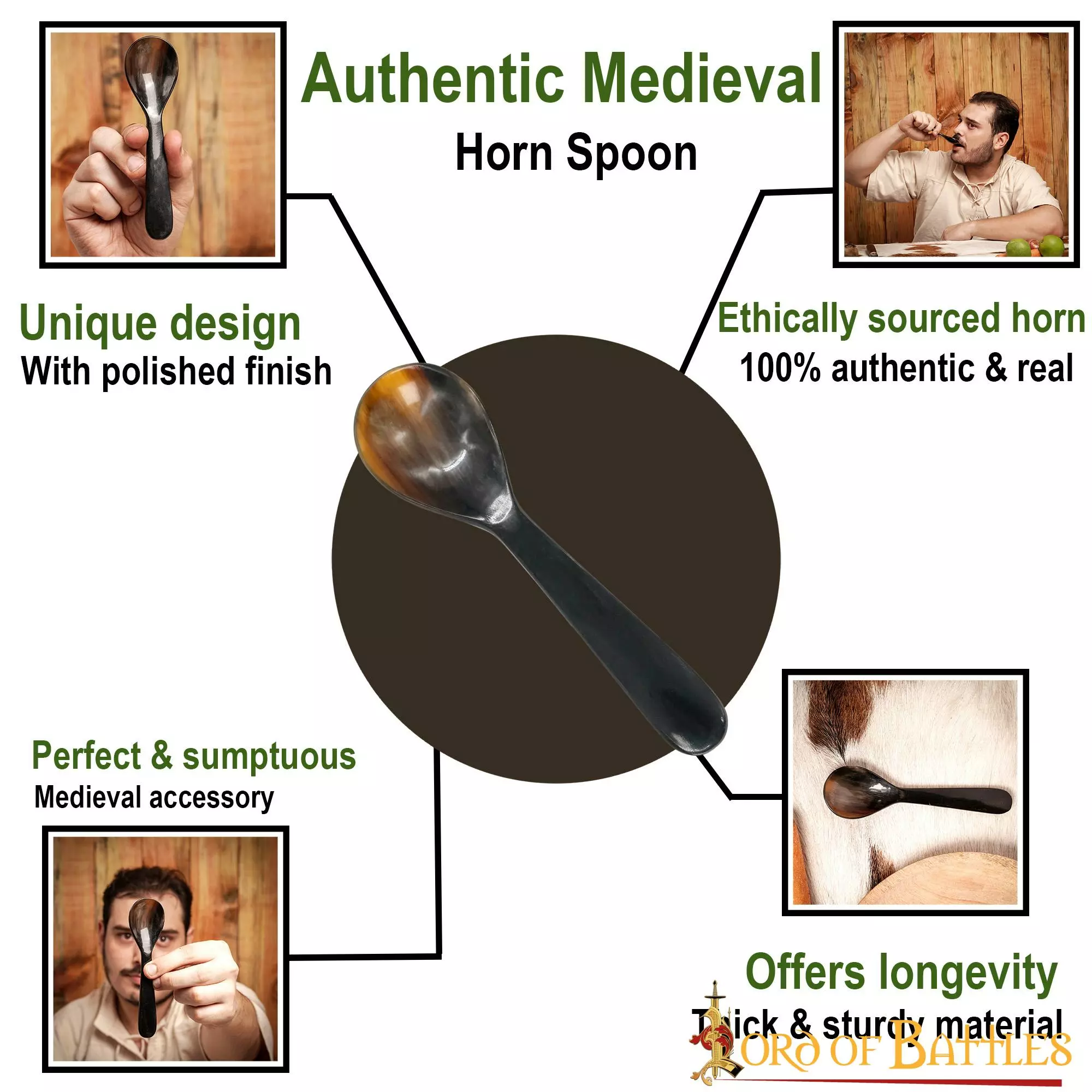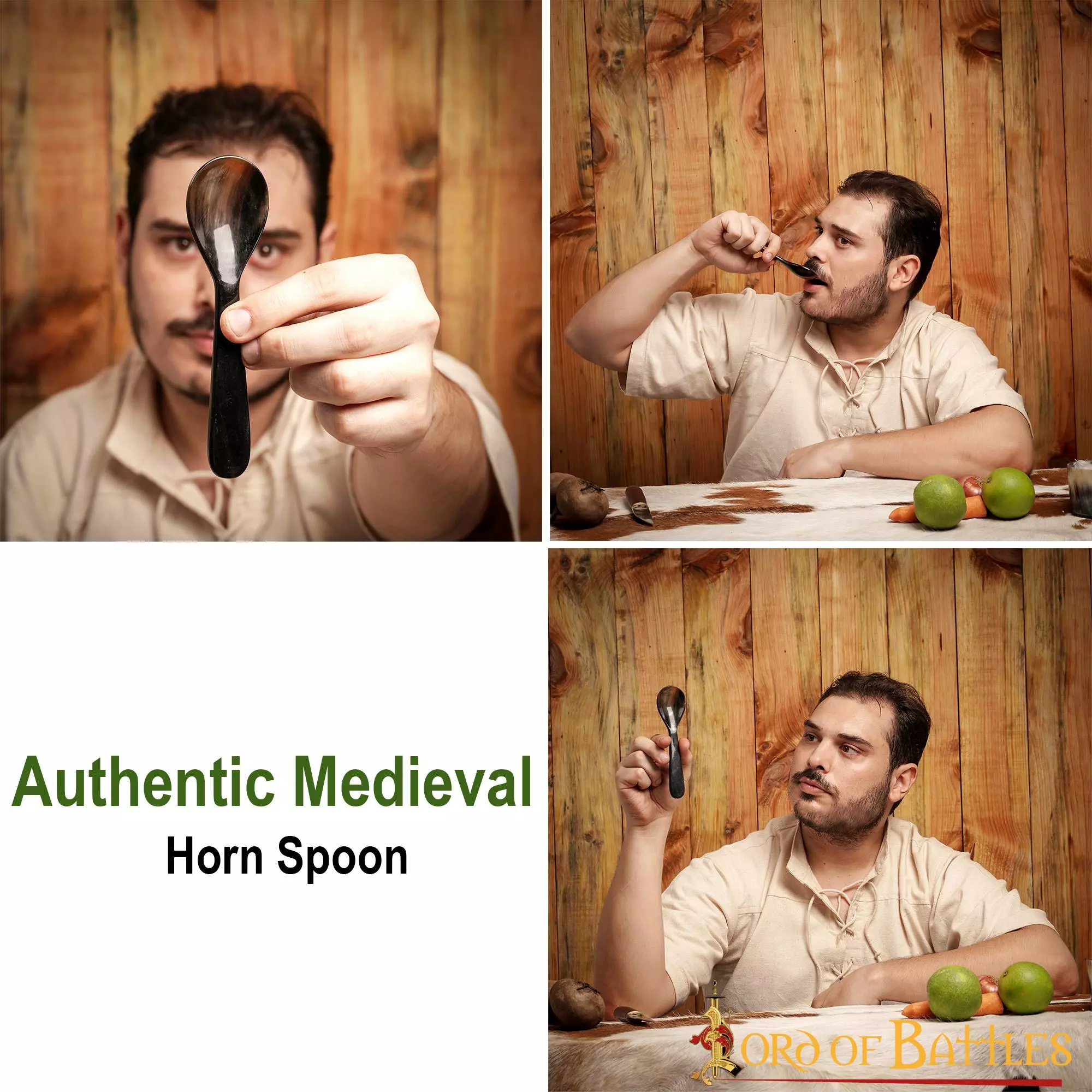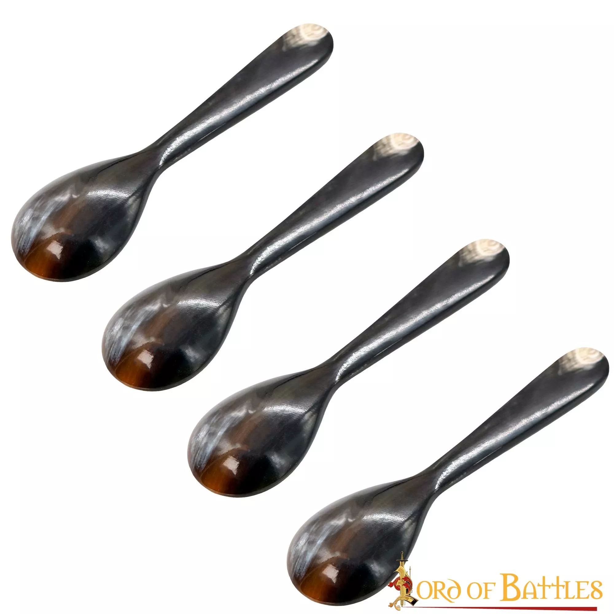 Un cuenco rebosante de delicioso potaje está a sólo una cucharada de usted. Pero, ¿qué le hará disfrutar al máximo? Nuestras cucharas medievales de cuerno. Hechas a mano con auténtico cuerno de vacuno de origen ético. Y para que los tuyos también disfruten contigo, hemos preparado este accesorio en un juego de 4.