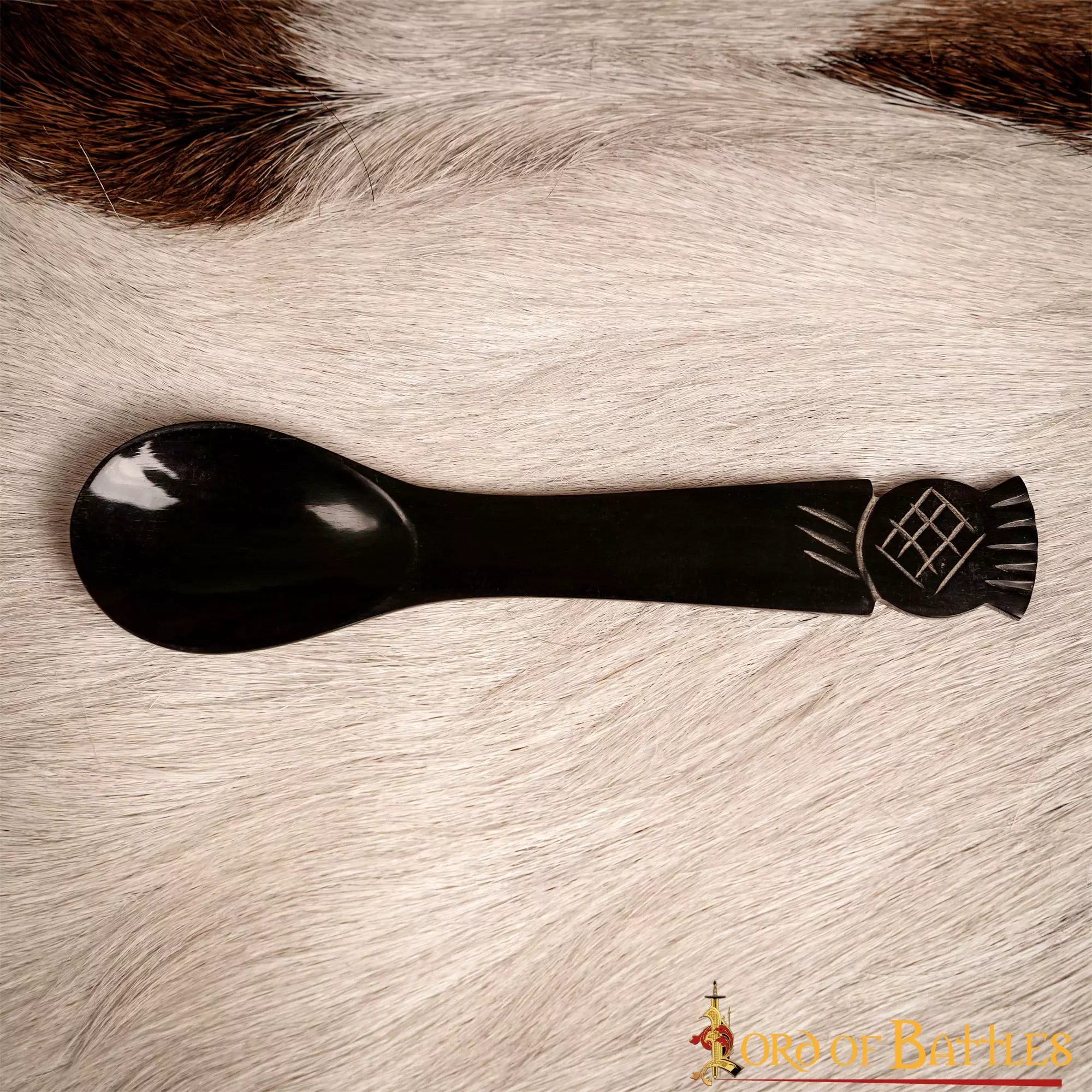 Está HECHA A MANO CON CUERNO DE BUEY DE ORIGEN ÉTICO. Cada cuchara mide aproximadamente 15,2 cm de largo. La cuchara es TOTALMENTE FUNCIONAL y puede utilizarse también para recreaciones históricas. Para que sus amigos disfruten de la comida con usted, le ofrecemos esta cuchara en un JUEGO DE CUATRO.
