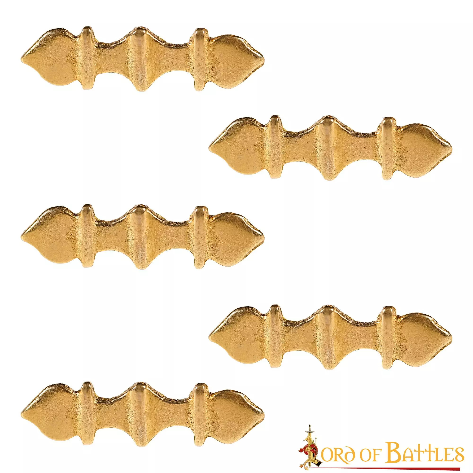 Están diseñados en LATÓN SÓLIDO y cada uno mide aproximadamente 2,8 cm de longitud. Están disponibles en un juego de cinco piezas.