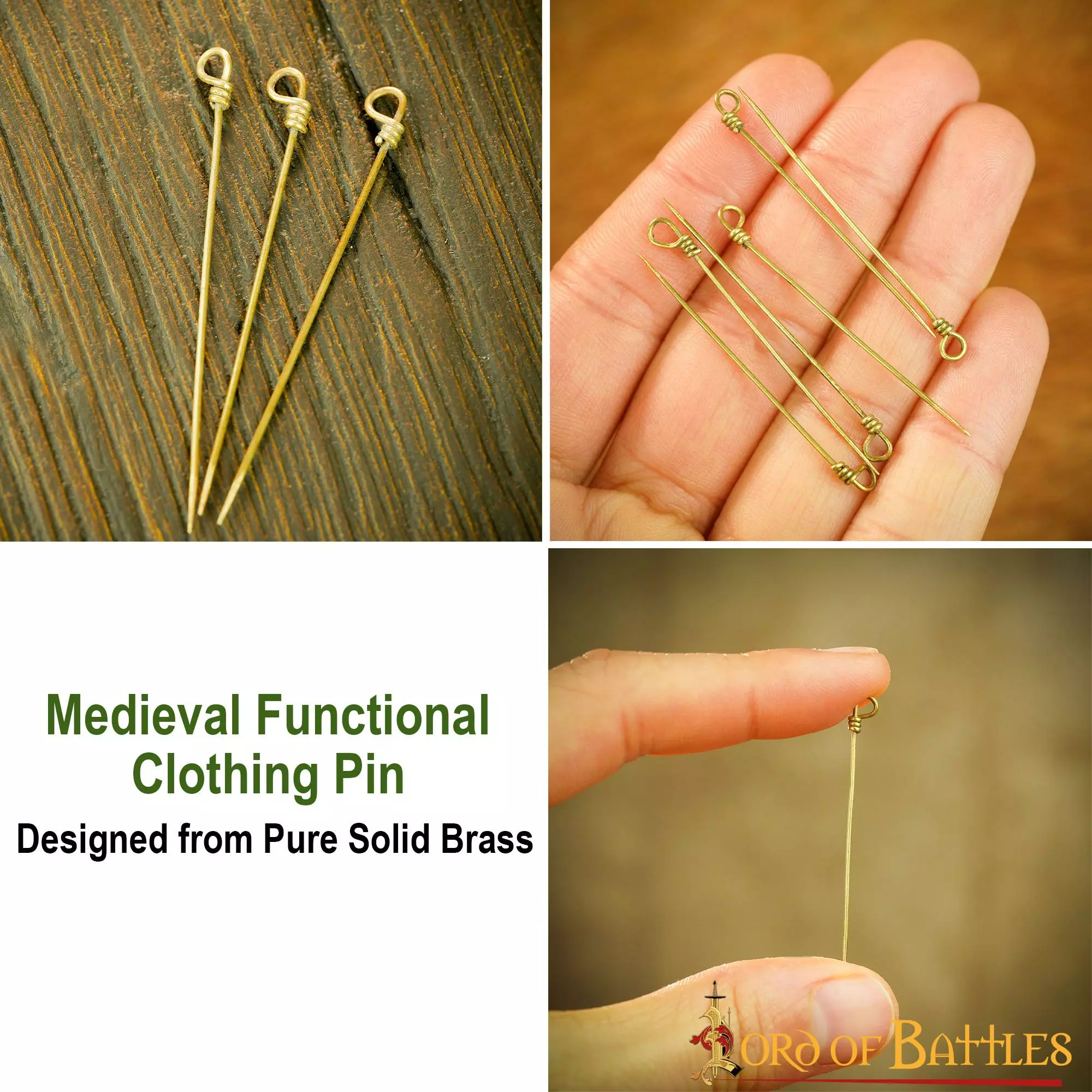 BIEN DISEÑADOS en LATÓN SÓLIDO PURO, estos alfileres durarán muchos años, evento tras evento. Para mayor utilidad, se suministran en un juego de seis, cada uno de los cuales mide unos 4 cm.