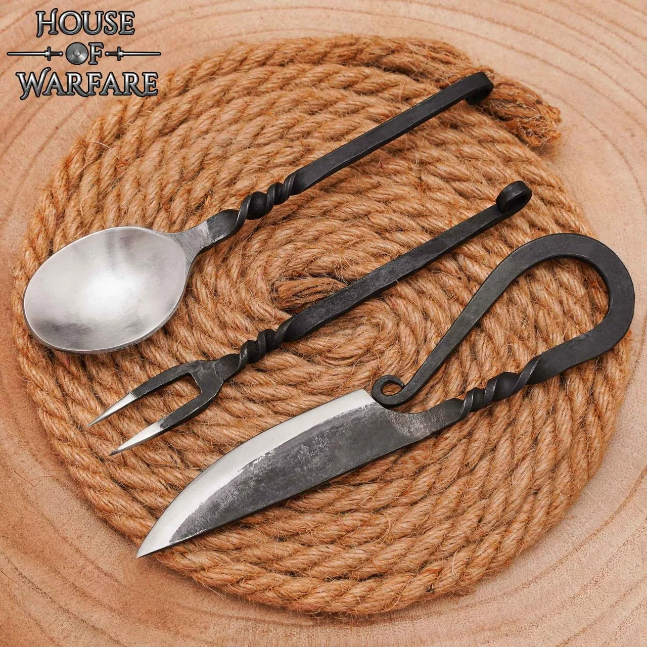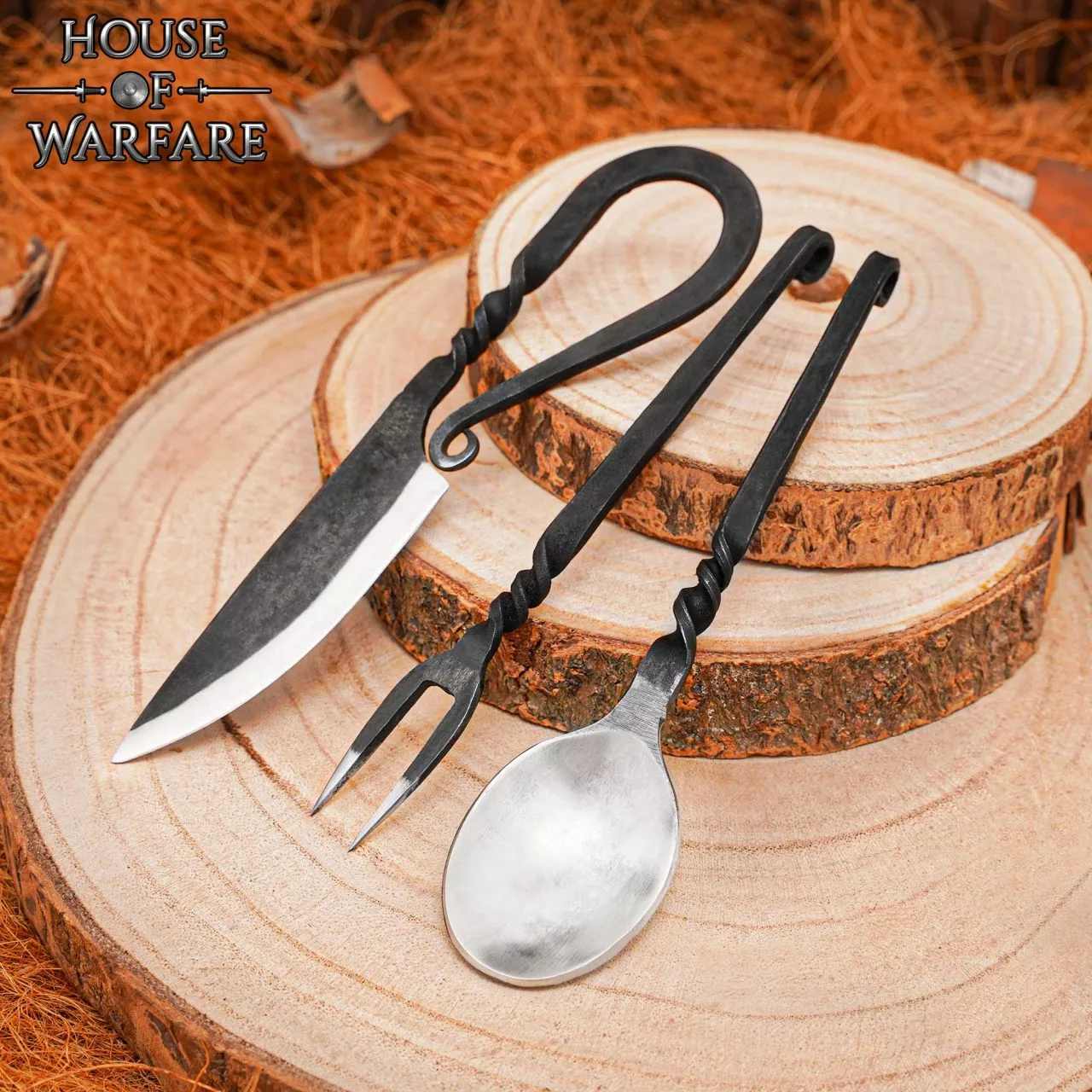 Juego De Cubiertos Medievales Forjados A Mano Con Vaina
