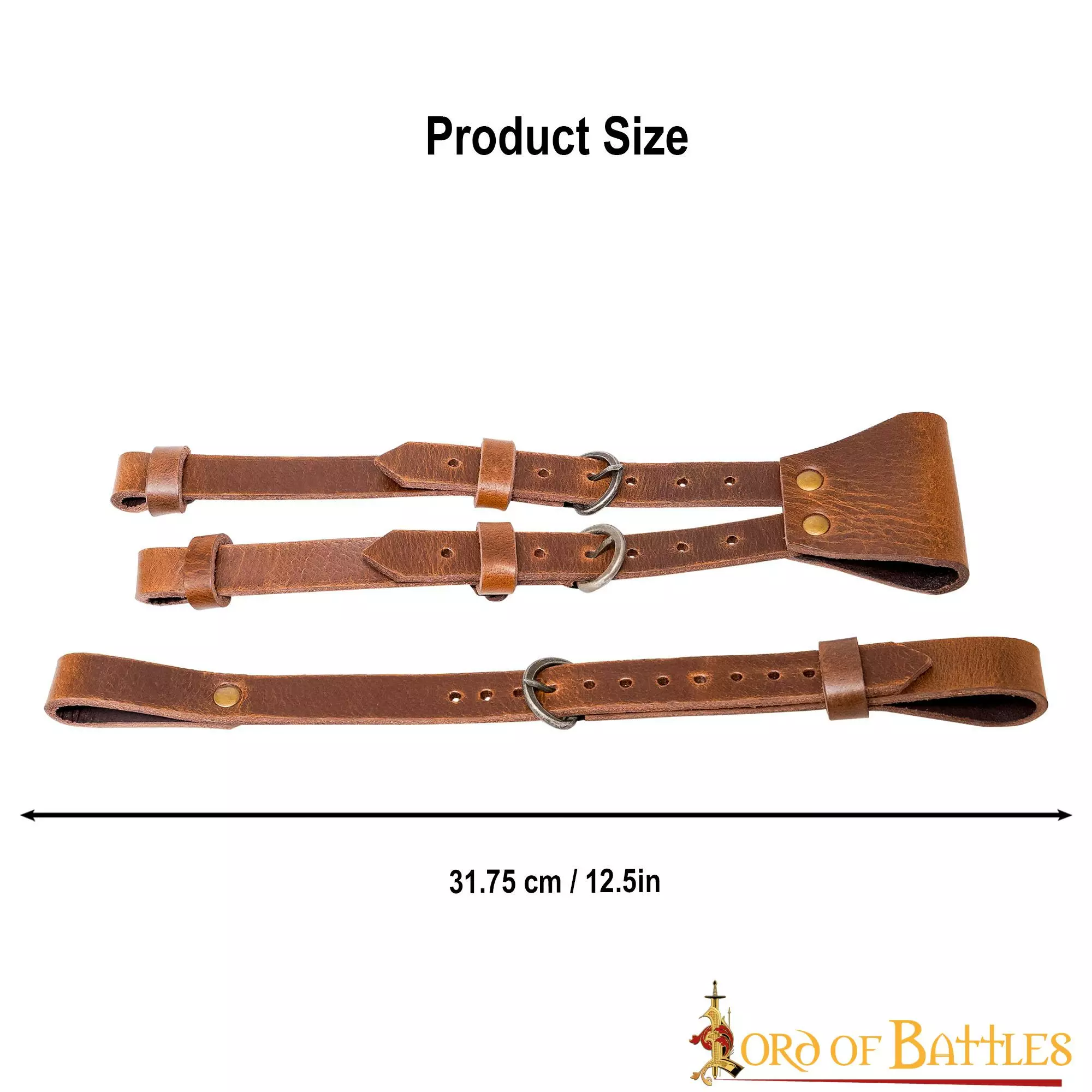 Este juego de cinturones para colgar espadas ha sido elaborado por nuestros expertos artesanos utilizando nada menos que CUERO DE BUFF GENUINO. El cinturón más largo tiene una longitud aproximada de 12,5 pulgadas. NOTA: Dado que se trata de cuero de ante auténtico, evite el contacto con la humedad; límpielo regularmente con lino (o cualquier paño suave); si se mancha, un paño húmedo y un poco de espuma de jabón suave harán lo necesario.