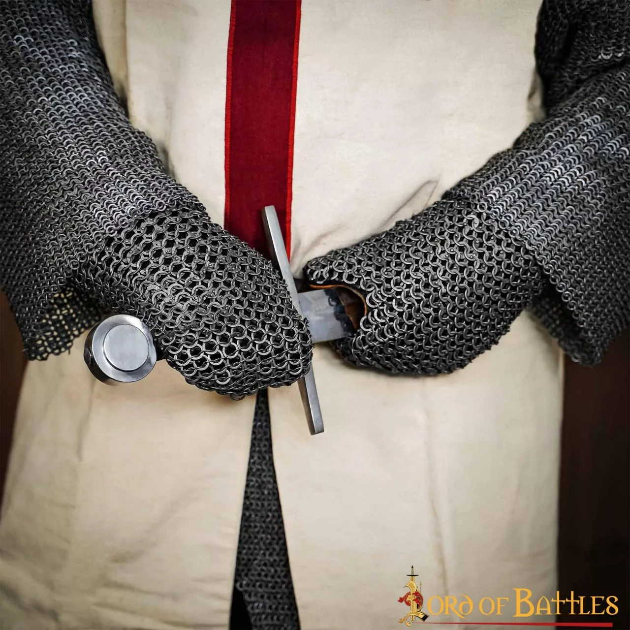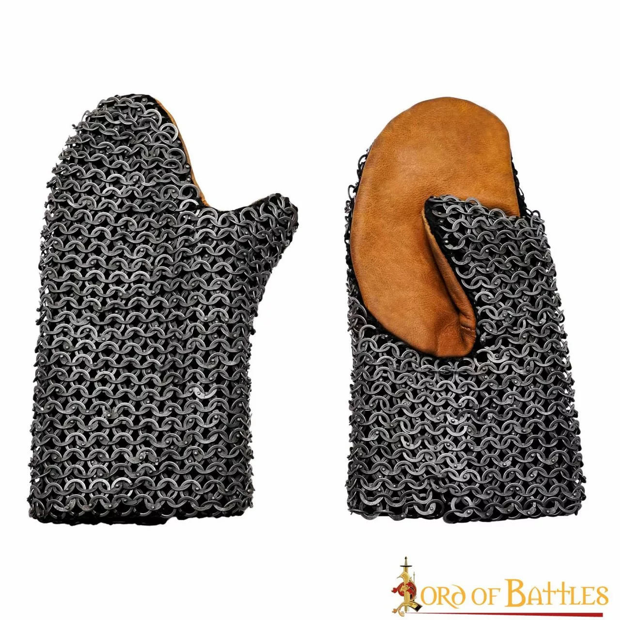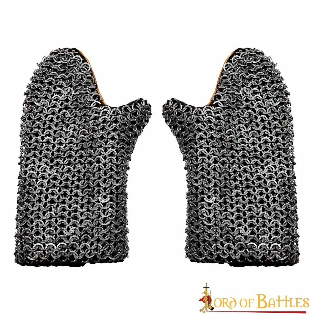 Manoplas Acolchadas Con Cota De Malla Acero Suave Anillo Plano Redondo Remachado (alt)