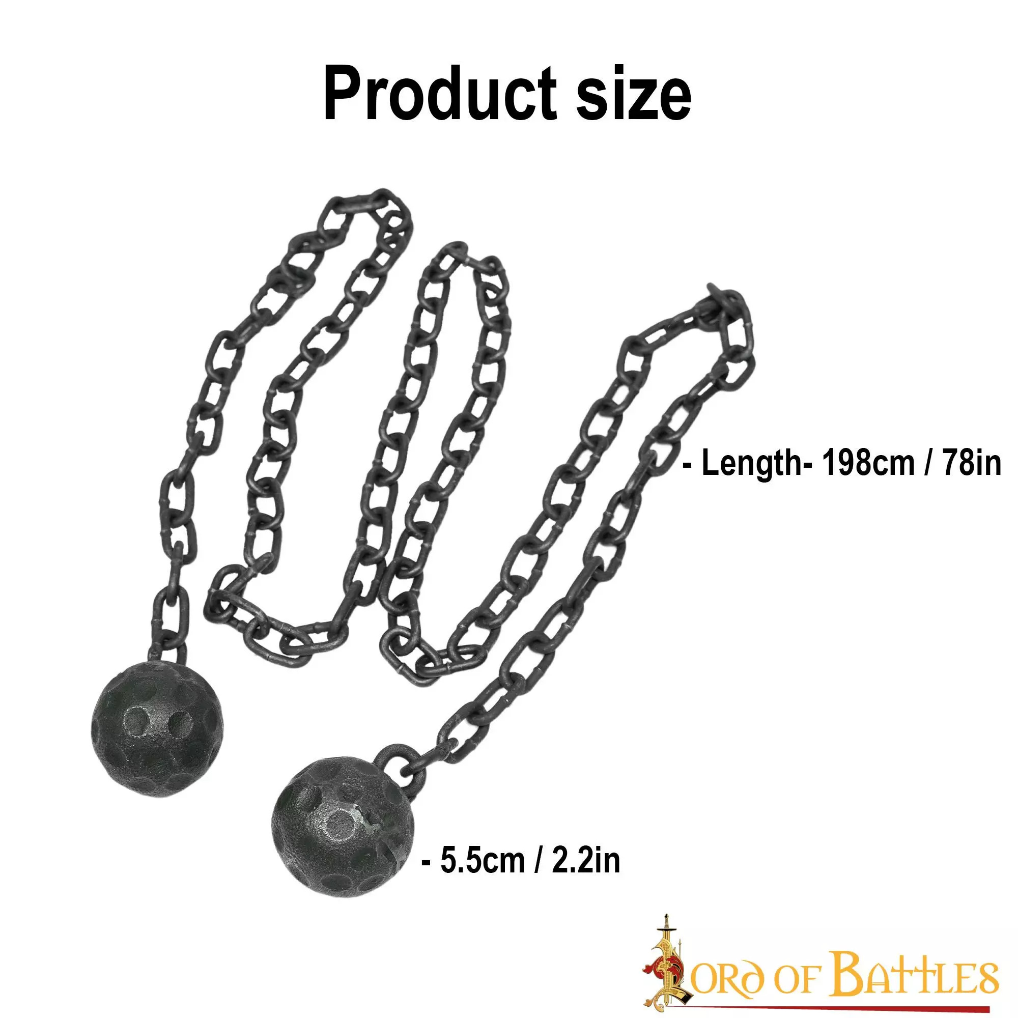 Cada réplica está fabricada a mano con acero de CARBONO DURO, lo que la convierte en un arma totalmente funcional, que puede utilizarse en combates reales. La cadena tiene una longitud aproximada de 198 cm; cada esfera tiene un diámetro aproximado de 5,5 cm.