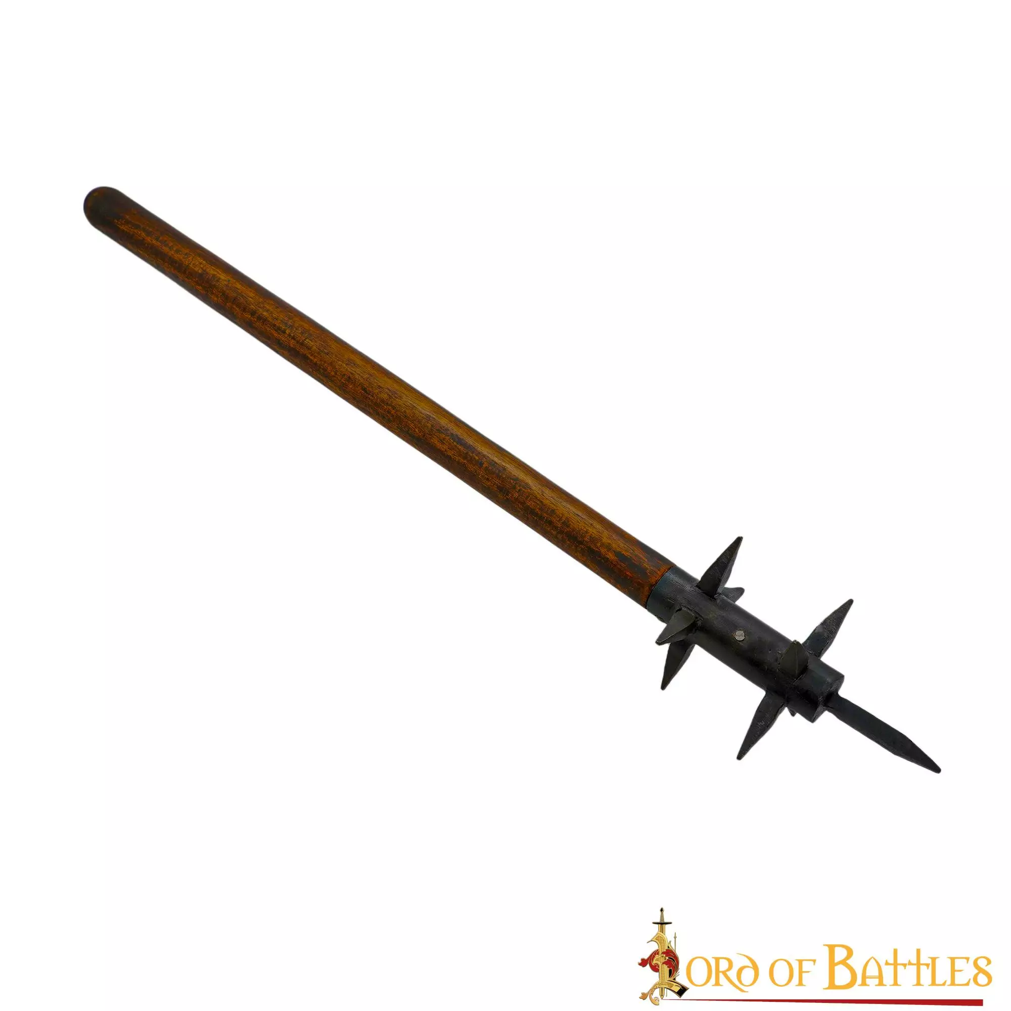 La cabeza con pinchos está HECHA A MANO de resistente ACERO AL CARBONO, lo que la convierte en un arma totalmente funcional, por lo que debe utilizarse con extrema precaución. La empuñadura es de madera de teca resistente. Su longitud total mide aproximadamente 68,5 cm.