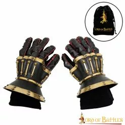 ¿Busca unos guanteletes de inspiración histórica que puedan realzar sus trajes de recreación del siglo XIV? Entonces, estos guanteletes de reloj de arena, con su elegante forma y sus motivos históricos, son sin duda la opción más adecuada para usted. Entre todos nuestros guanteletes, son una de esas piezas de armadura que ofrecen un amplio rango de movimiento y la máxima movilidad para su muñeca, gracias a sus amplios puños típicos de la época. No es de extrañar que se hayan inspirado directamente en un original de la segunda mitad del siglo XIV, actualmente expuesto en Florencia (Italia).