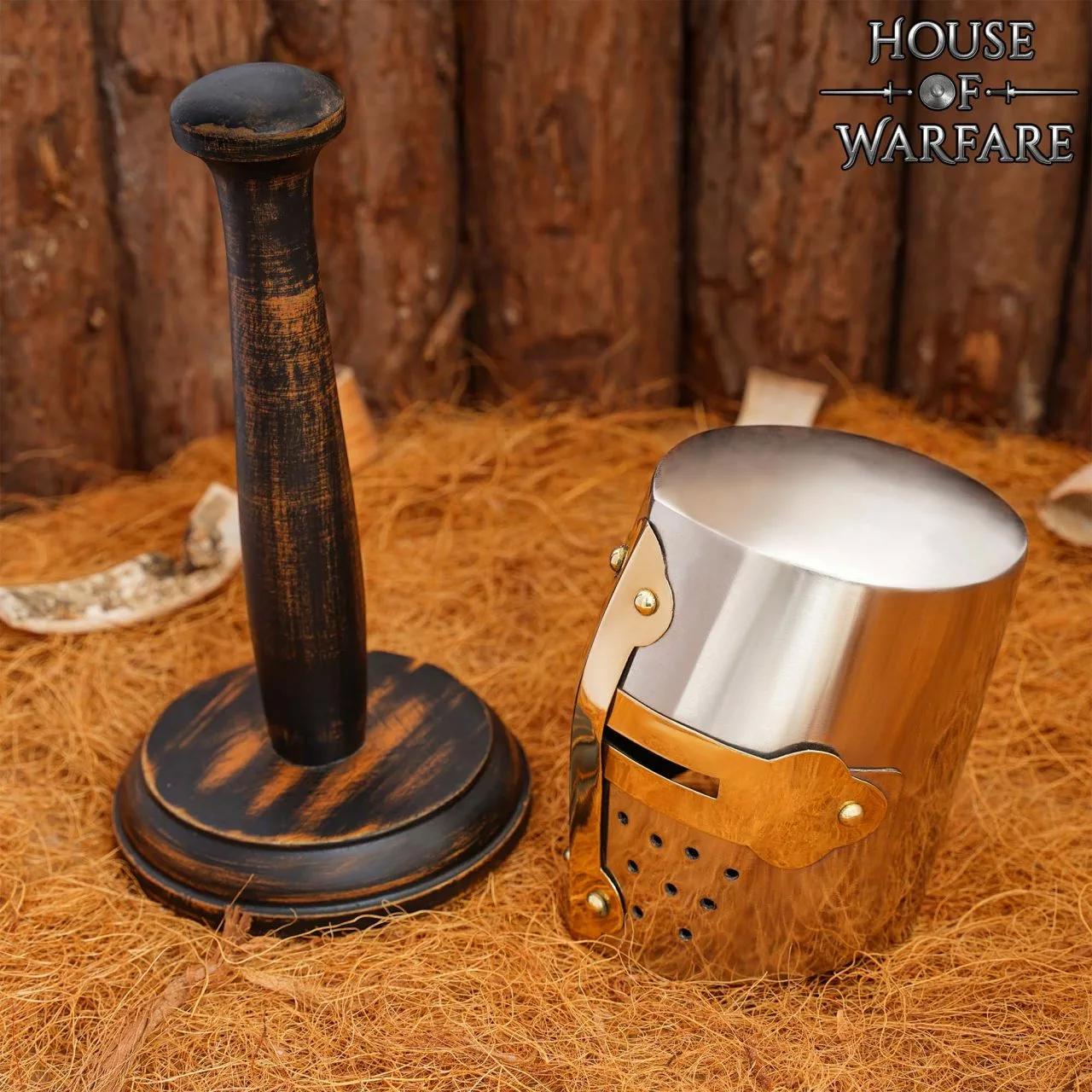 Mini Casco De Caballero Cruzado Con Soporte De Madera