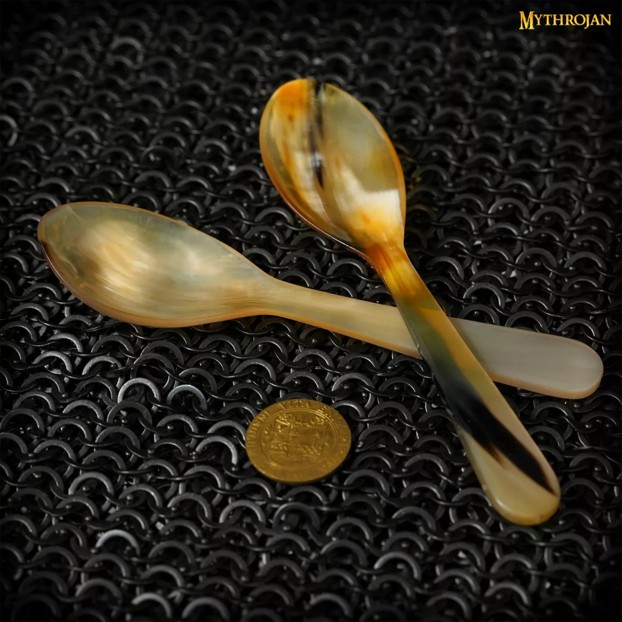 Mythrojan 4pcs Cucharas De Cuerno De Búfalo Acabado Pulido Hecho A Mano De Cuerno De Buey Genuino Accesorio De Cuerno Totalmente Funcional Para Recreaciones