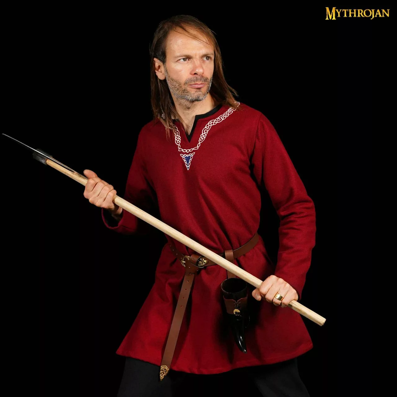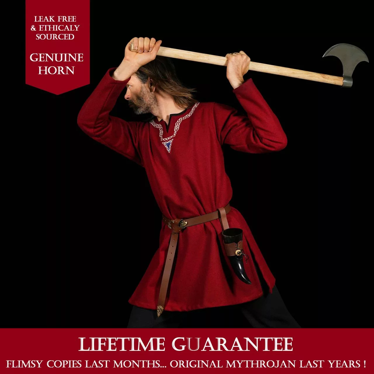 Mythrojan Pequeño Cuerno Para Beber Con Soporte De Cuero Marrón Auténtica Taza Vikinga Inspirada En La Edad Media 150ml Con Bolsa Mythrojan