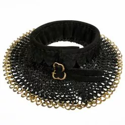 Mythrojan RIVETED CHAINMAIL STANDARD «El Caballero Negro Gorget»: Remaches Redondos De Aro Plano De 9 Mm (Alt) Con Forro Acolchado De Ante Negro Y Bordes De Latón Macizo