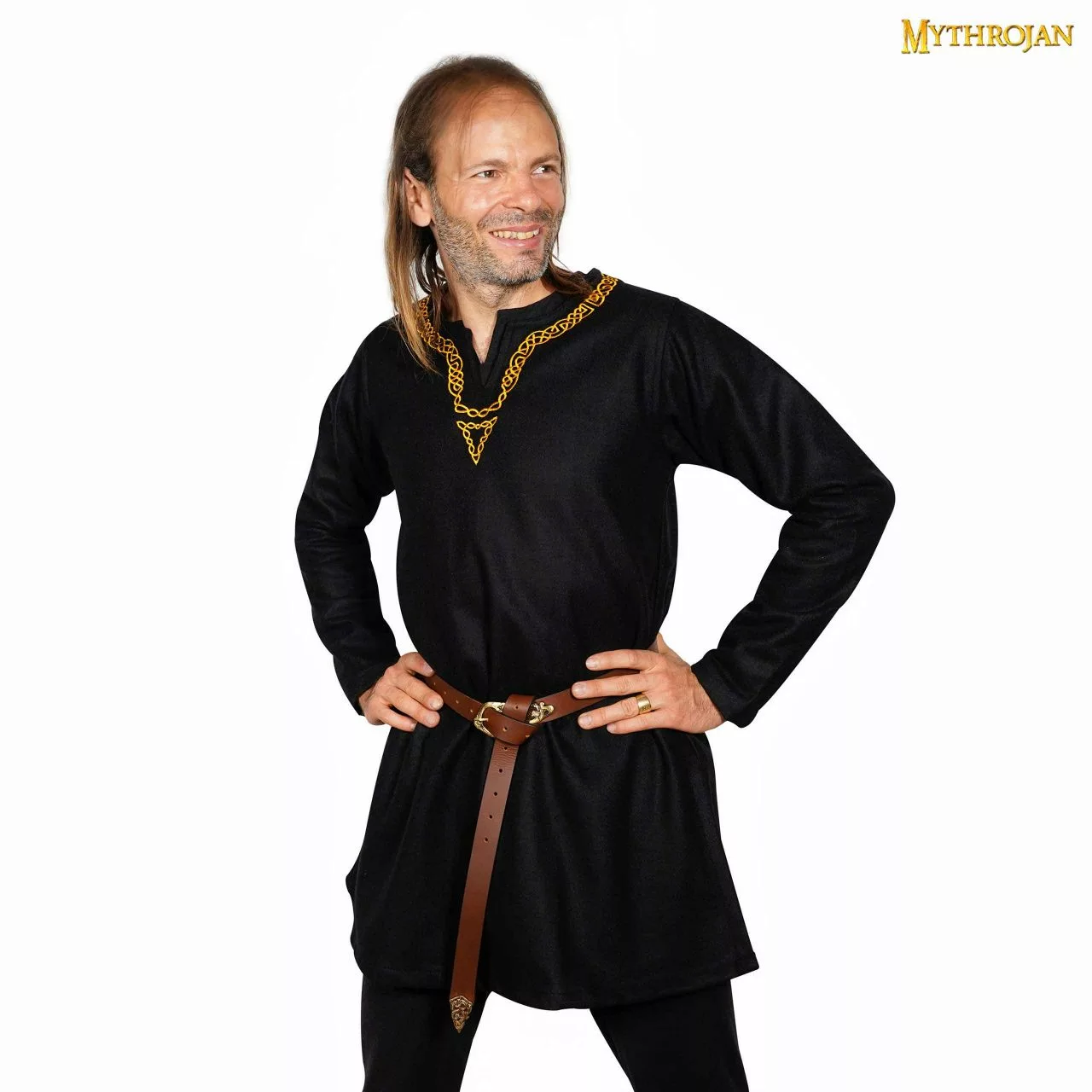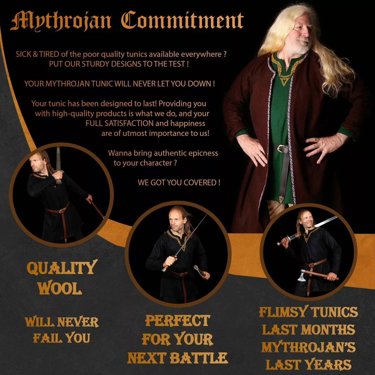 Mythrojan Túnica De Lana Bordada Vikingos Medieval Vikingos LARP Lana