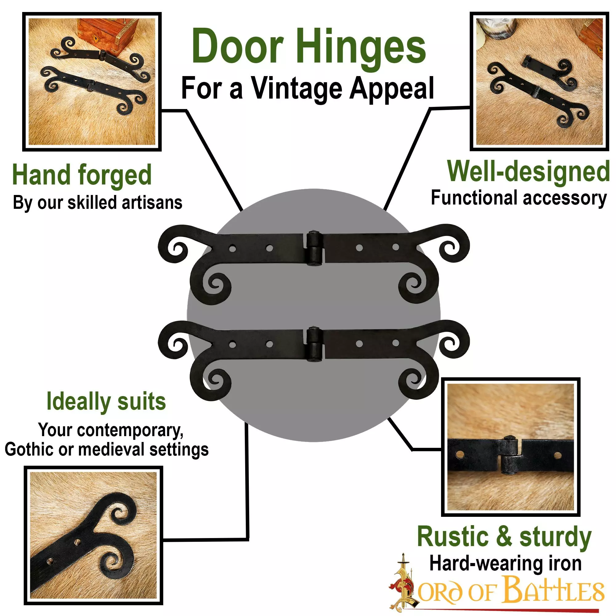 ¿Quiere añadir un toque medieval rústico a su puerta de madera lisa? Esta bisagra de puerta con extremos sutilmente curvados sin duda aportará un toque contemporáneo, medieval o incluso gótico.