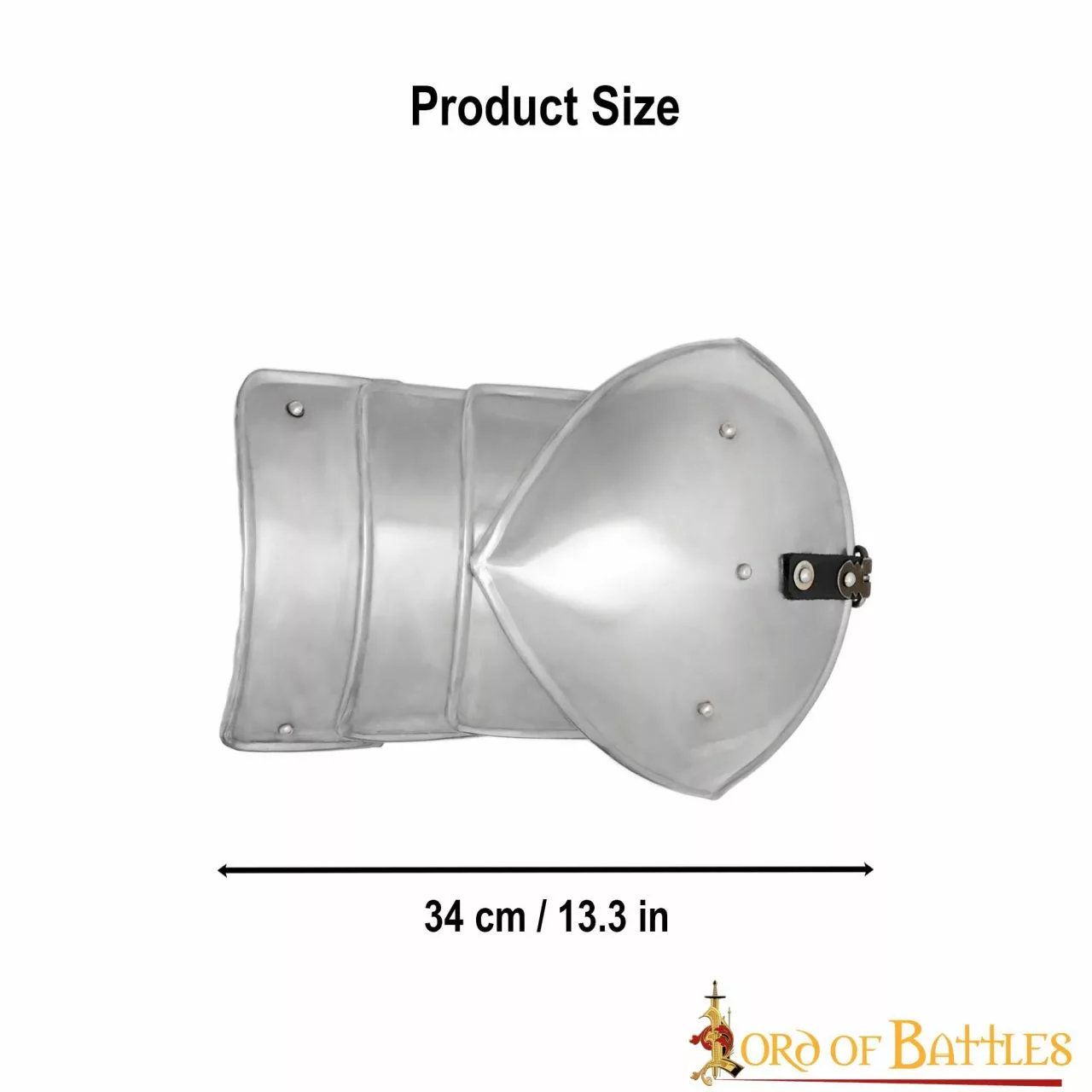 calibre MILD STEEL, lo que los hace ligeros y perfectos para LARP y ferias renacentistas. Su construcción bien diseñada les permite ser fácilmente abrochado a un gorget o coraza. Se fabrican en UNA TALLA QUE SE AJUSTA A LA MAYORIA.