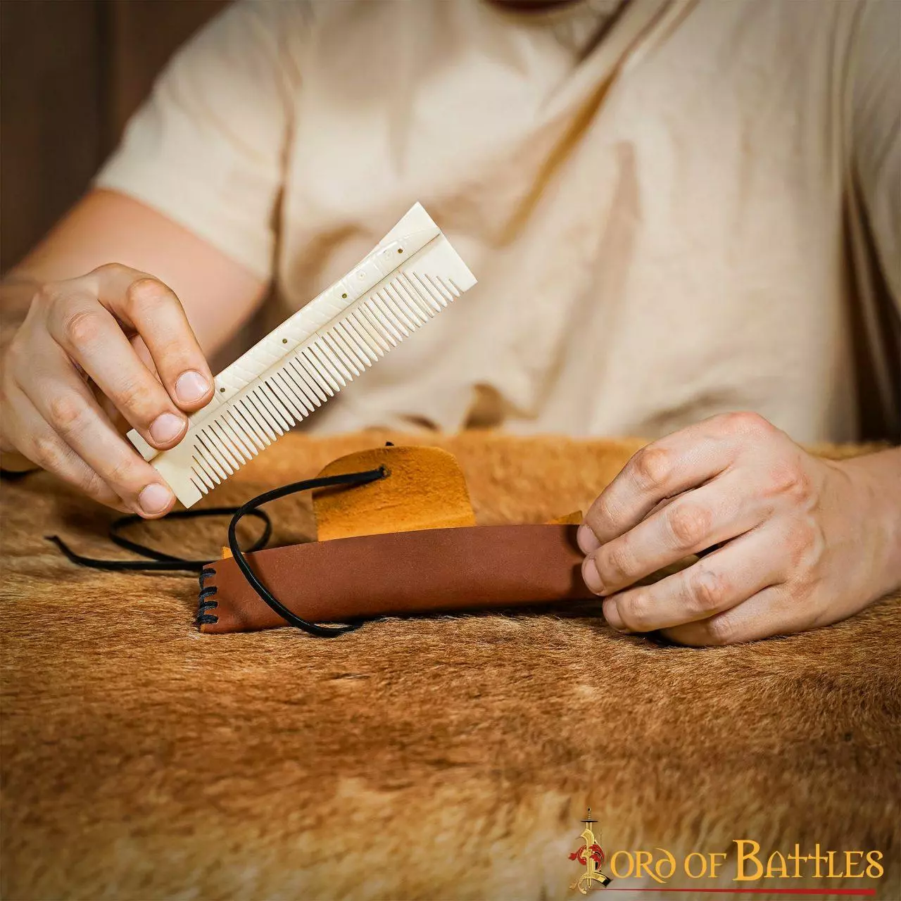 Why use the flimsy replicas available when you can historically enhance the daily deed of grooming your hair? All you need is to make this well-crafted bone comb a part of your accessories! And when out to your reenactment or medieval event, make sure to keep it safe in the high-quality, genuine leather sheath offered with it!
