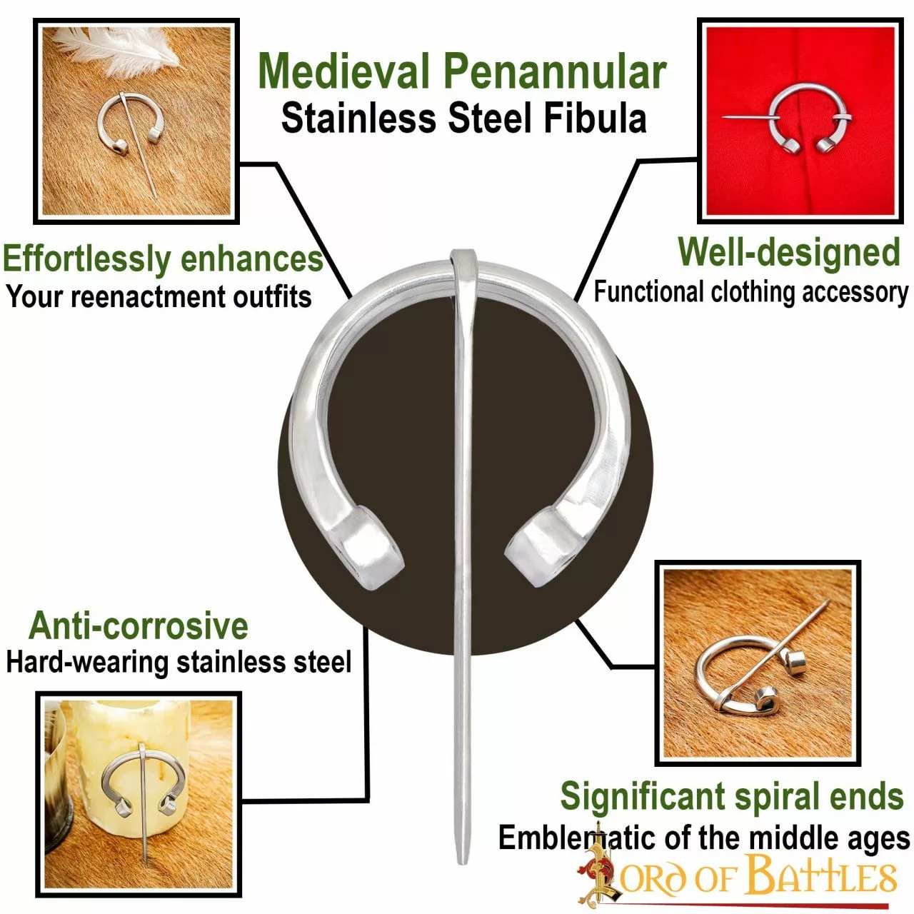 Peroné Medieval De Acero Inoxidable Con Extremos Enrollados