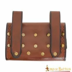 MYTHROJAN «STALWART WARRIOR» BOLSA DE CUERO Para LARP, Cosplay Medieval SCA Marrón, 8″×8