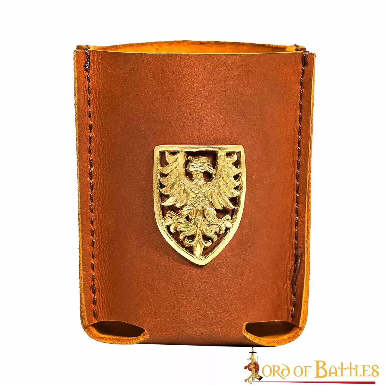 HECHO A MANO con CUERO GENUINO de la más alta calidad, mide 10,2 cm de largo y 9,5 cm de ancho (ambas medidas son aproximadas). El MOTIVO HERALDICO DE ÁGUILA, firmemente fijado en la parte delantera, está fabricado en LATÓN PURO, lo que añade un toque de historicidad.