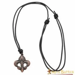 Colgante Flor De Lis Con Cordón De Cuero Ajustable Accesorio De Latón Envejecido