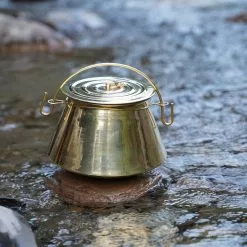 Olla / Hervidor Medieval De Latón Macizo Accesorio De Camping