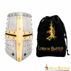 Crusader Knight Pot Helm Battle Ready Con Cruz De Latón Calibre 16