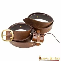 Cinturón Medieval De Cuero Con Hebilla Y Capucha De Latón Puro