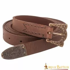 Cinturón Vikingo Ornamentado De Cuero Con Hebilla Y Capucha De Latón Antiguo