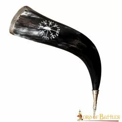 Cuerno Para Beber Vikingo Medieval Cuerno De Buey Auténtico Con Vegvisir Grabado