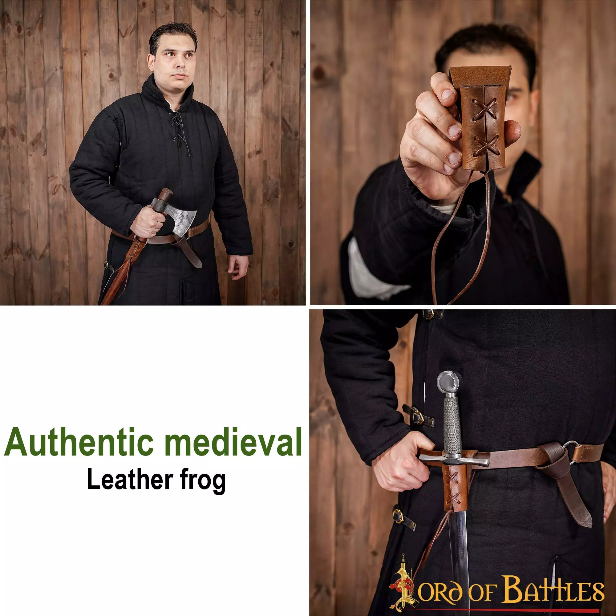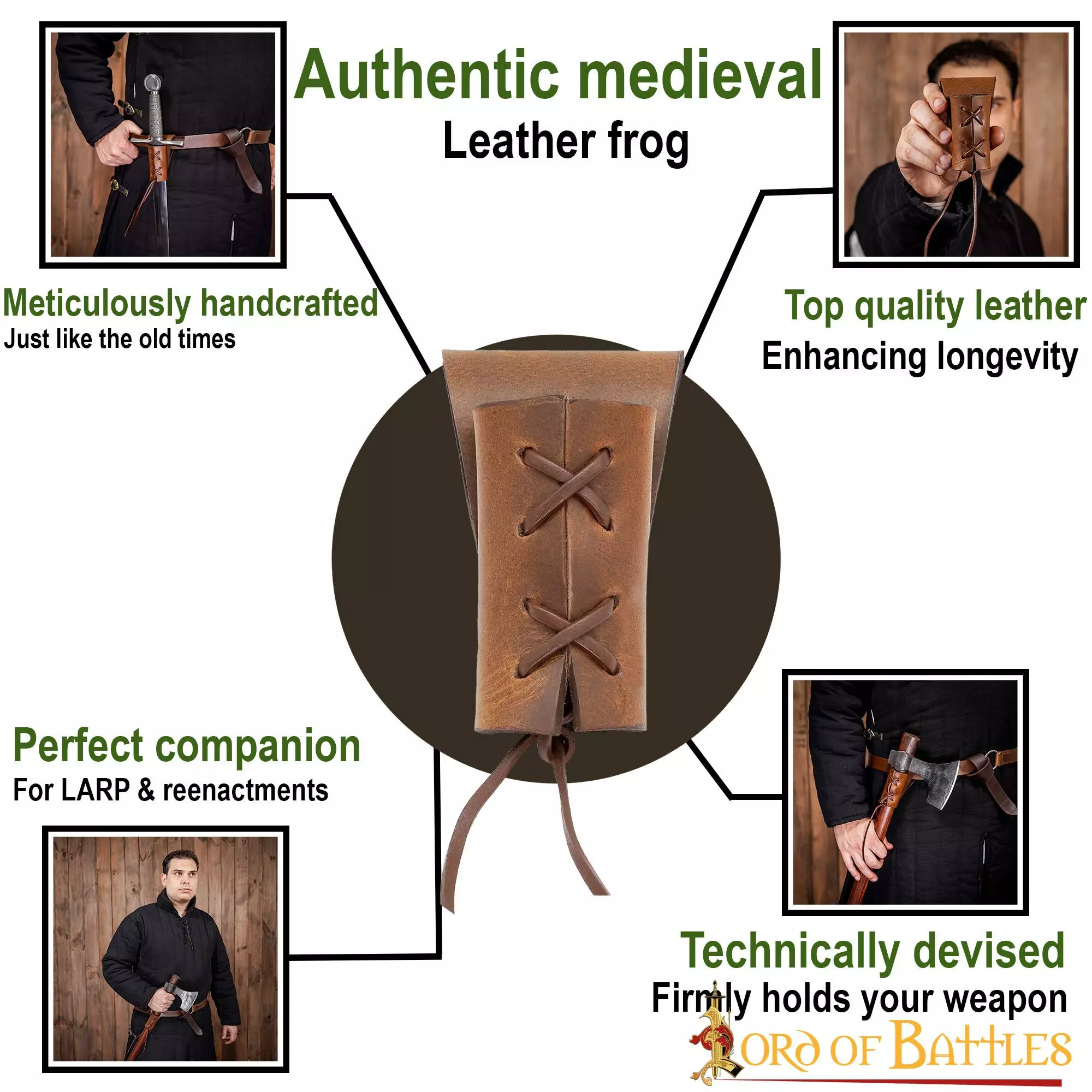 Si eres un caballero en otra aventura, esta robusta rana de cuero se asegurará de llevar siempre contigo tu arma más mortífera.