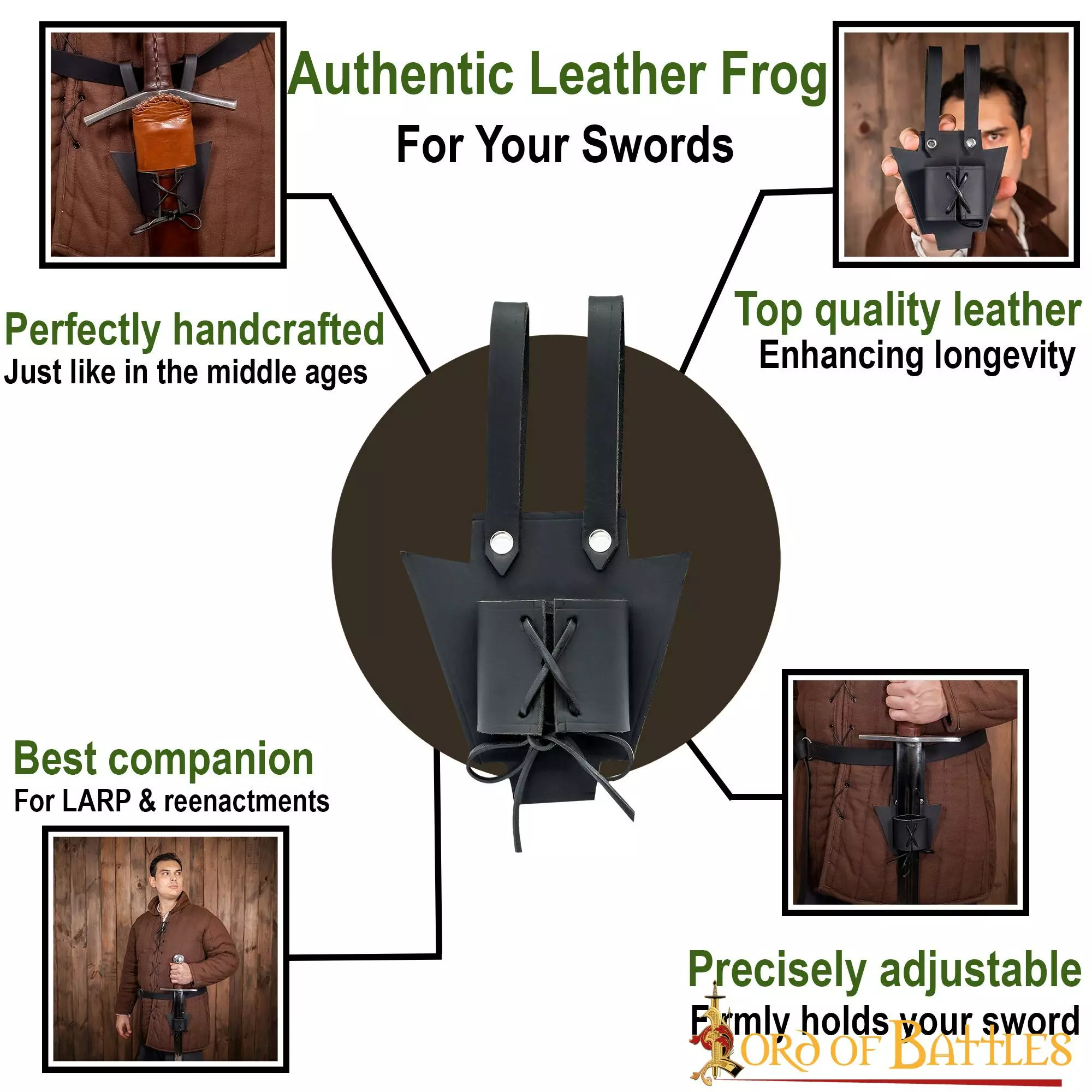 Si eres un caballero en otra aventura, esta robusta rana de cuero se asegurará de llevar siempre contigo tu espada más poderosa. Es ideal para tus eventos medievales, LARP, ¡o para un personaje de tu universo favorito!