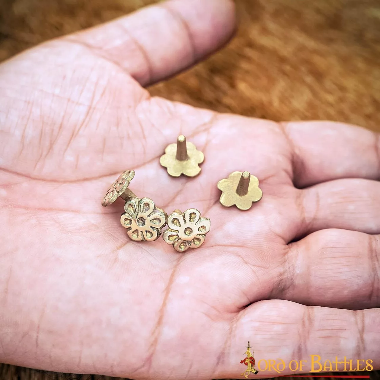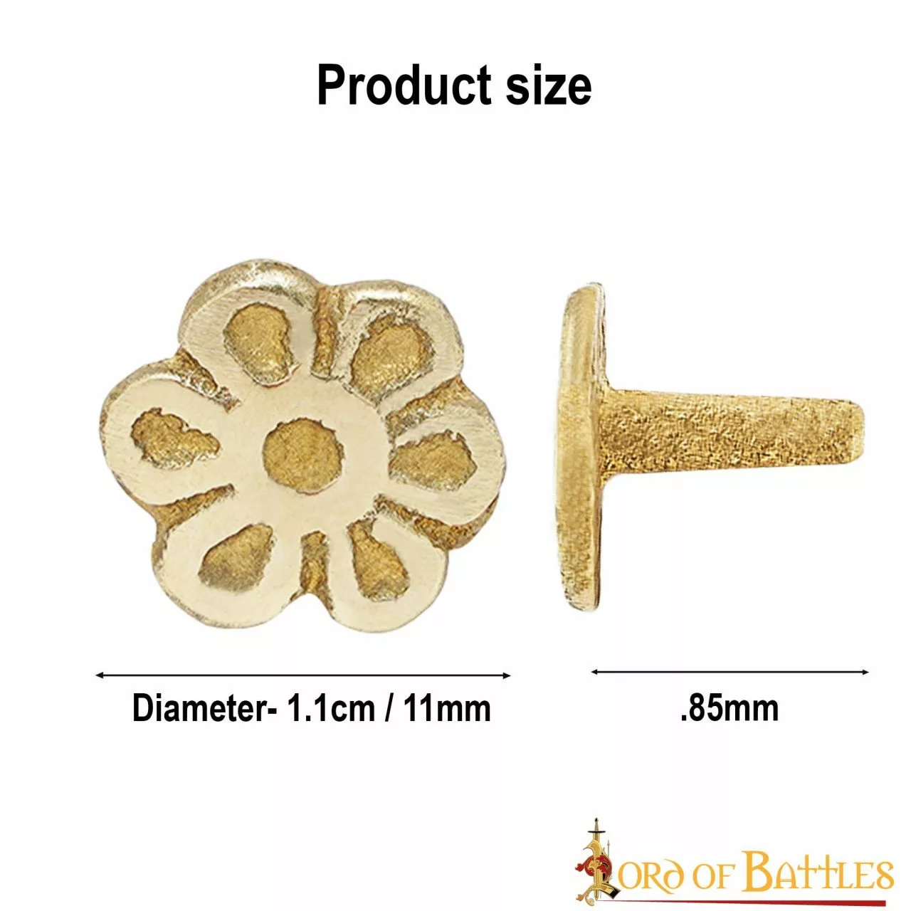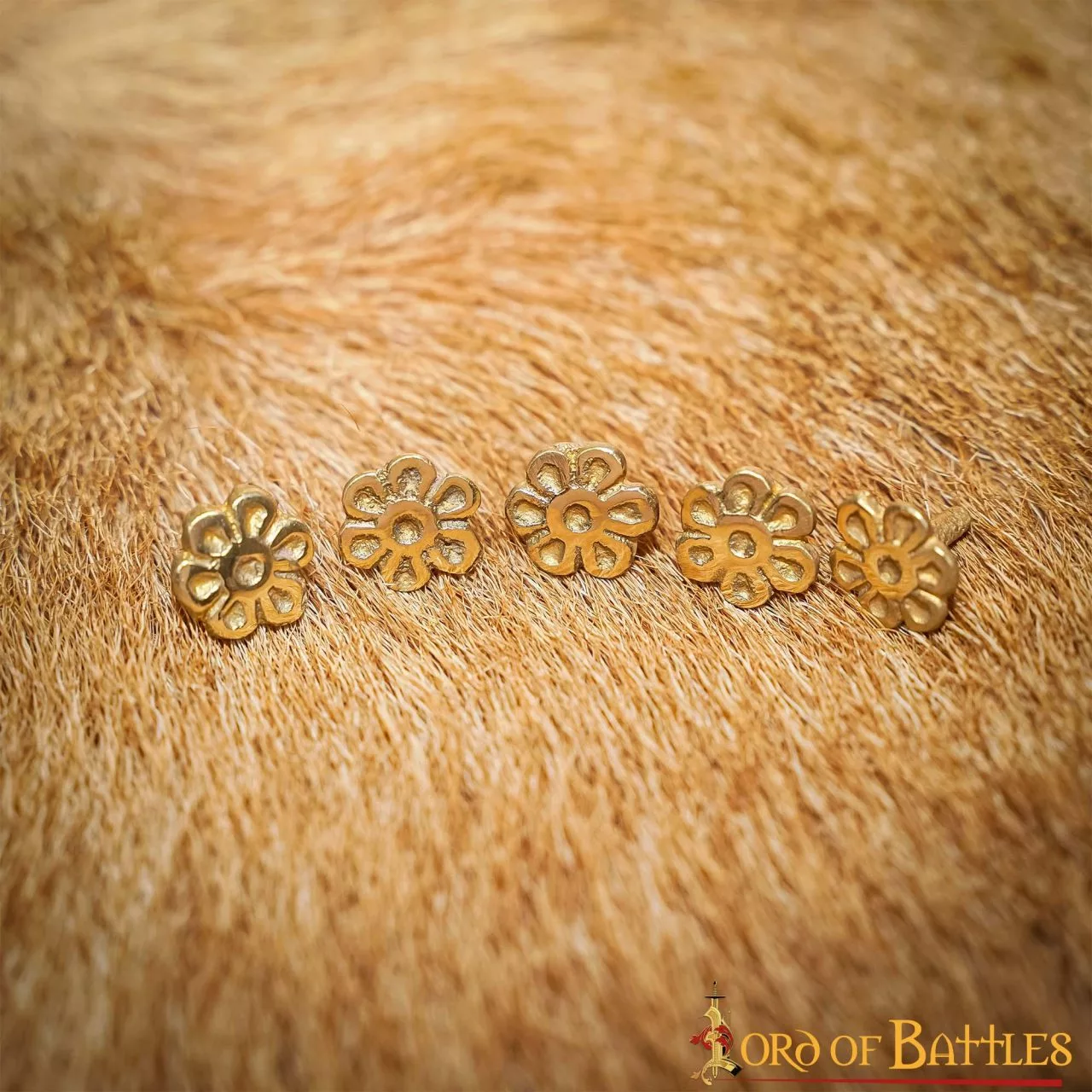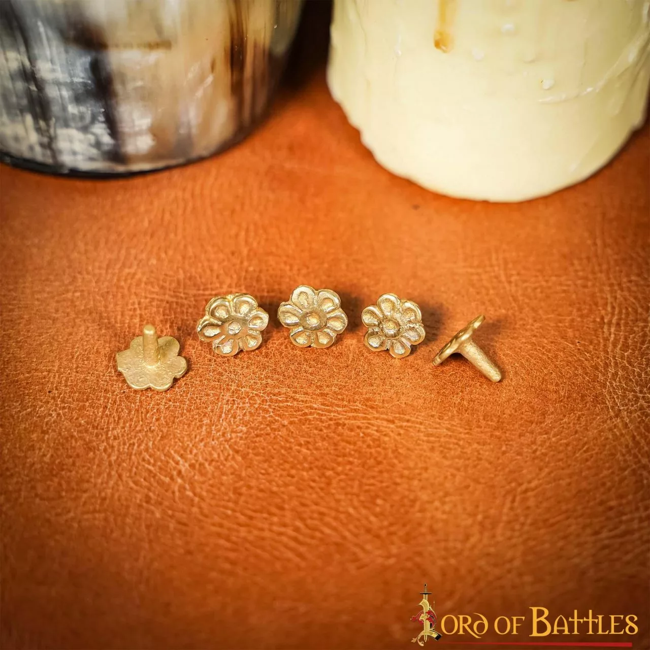 Rosetón Medieval Latón Puro Monturas / Conchos Juego De 5