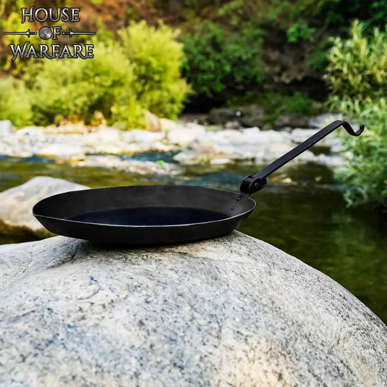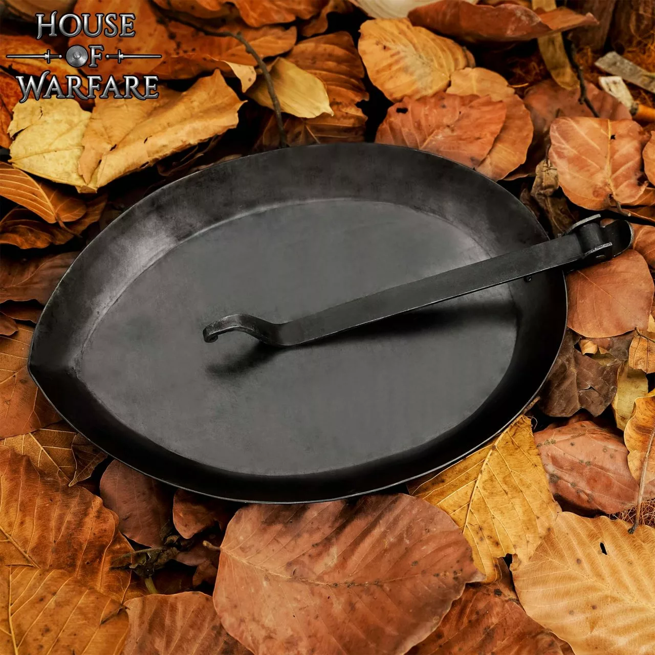 A medieval hand-forged iron pan forged by skilled blacksmiths in the time-honoured traditions of yesteryear, this House of Warfare pan features a rugged, rustic charm that makes it simply stand out. It’s the ideal tool for cooking over an open flame, thanks to its foldable handle that enhances its ease of usage! So it’s not just a pan. It’s a piece of history to last for years ahead.