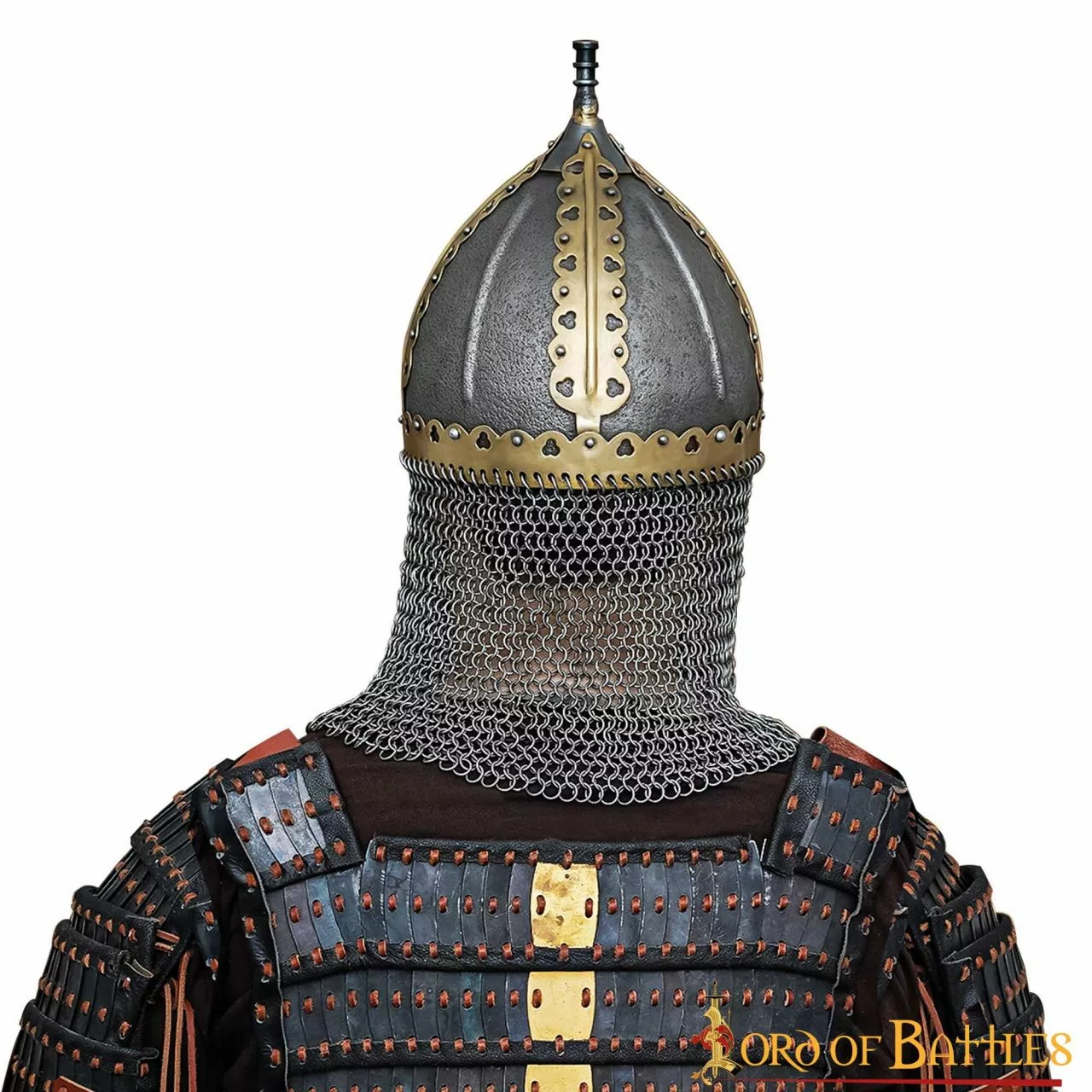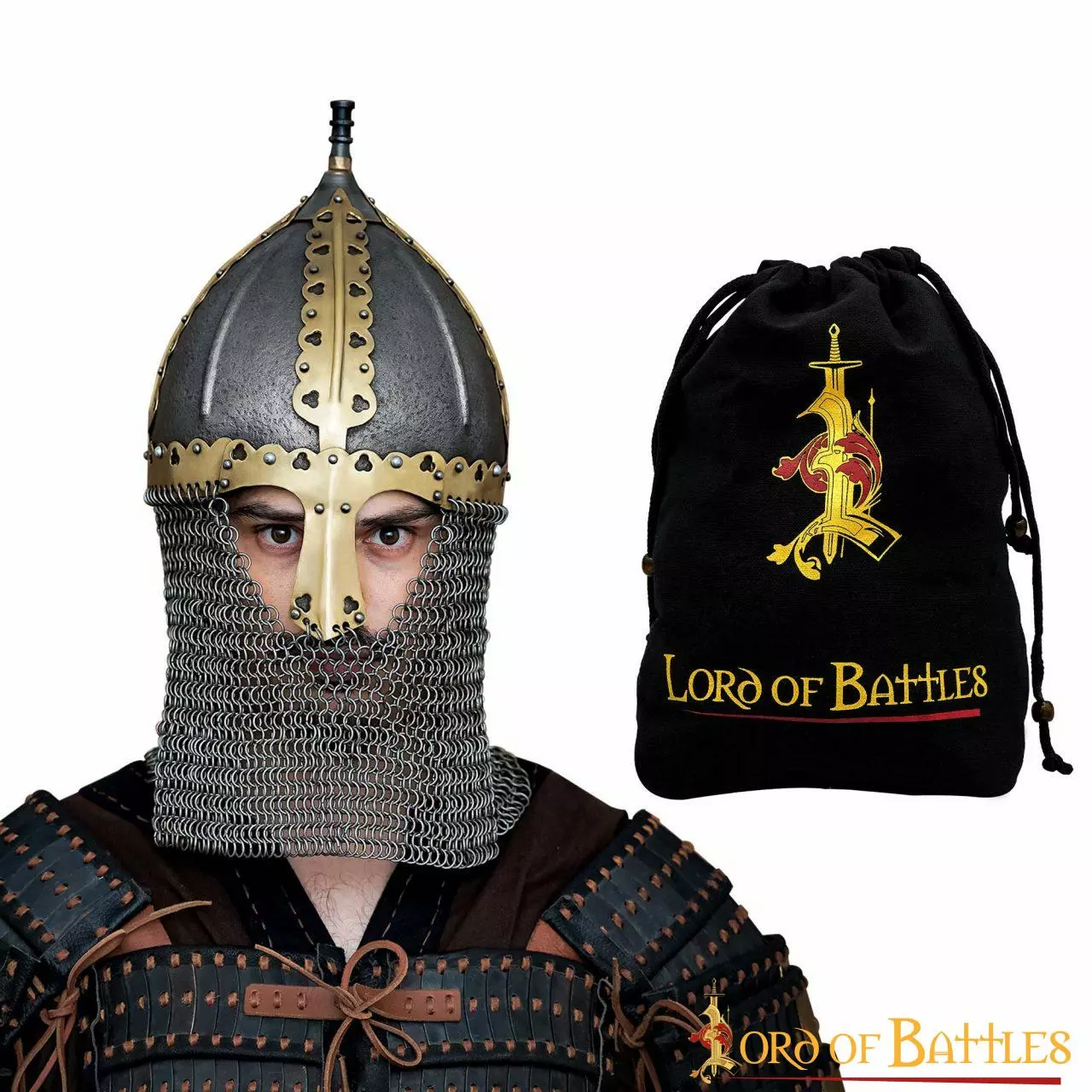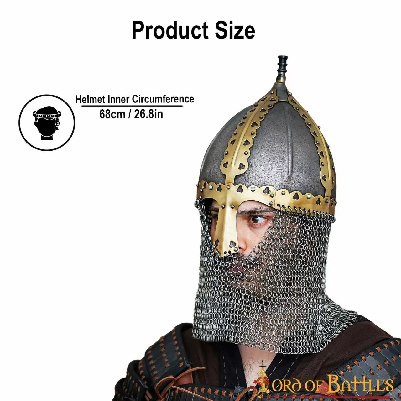 Este hermoso casco Gnezdovo está HECHO A MANO de acero dulce de calibre 16, forrado con un cómodo y seguro forro de cuero y un resistente aventail de correo a tope. Una circunferencia de aproximadamente 68 cm hace que se adapte a casi todos los tamaños de cabeza. Y una robusta correa de barbilla cerrada con una preciosa hebilla ayudará a mantener el casco en su sitio durante todas tus batallas. Nota: Este producto se recubre cuidadosamente con una capa de aceite cuando se envasa que actúa como una capa temporal (protectora) contra la corrosión (óxido), que puede limpiarse fácilmente con cualquier producto quitagrasas o incluso con un paño seco.
