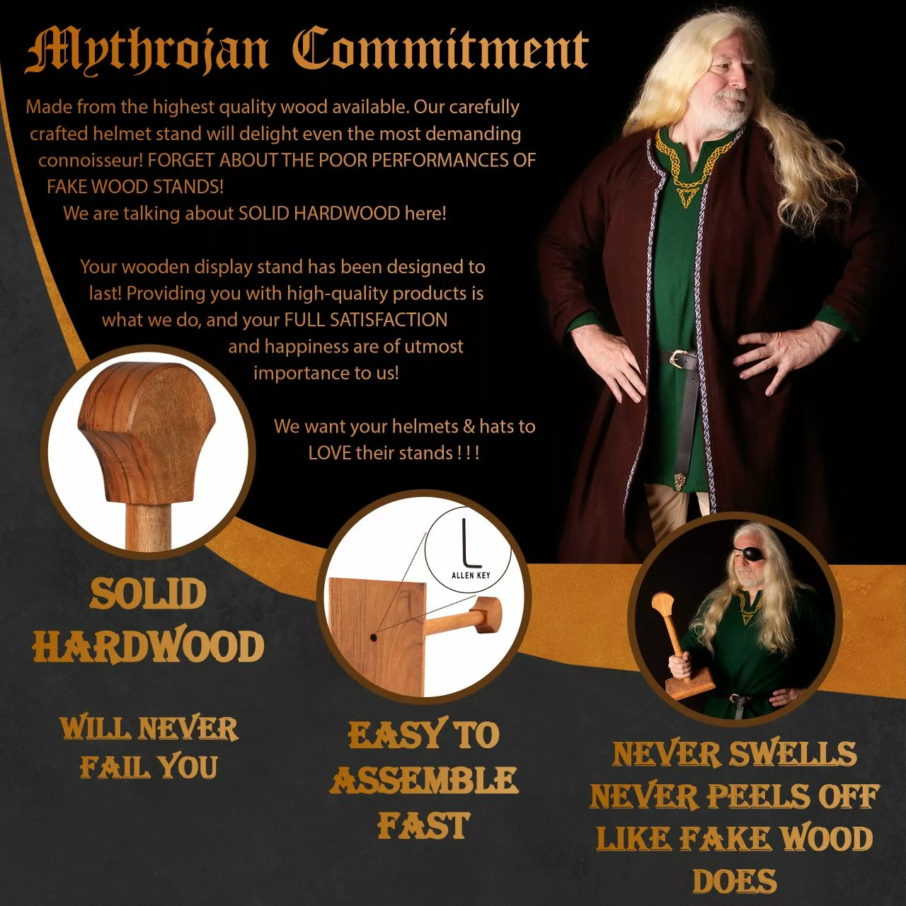 - TAMAÑO PERFECTO PARA MOSTRAR SU CASCO EN SU MEJOR LUMINOSIDAD: ¿Hay algo mejor que recibir a los buenos amigos en un banquete festivo o en una boda memorable y compartir una buena cerveza rodeados de sus cascos favoritos orgullosamente expuestos en sus elegantes soportes de madera, como ecos lejanos de un pasado lejano?