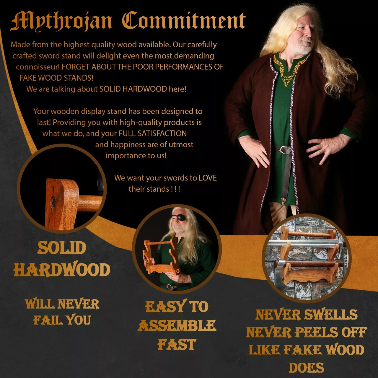 - MADERA SÓLIDA Y ARTESANÍA TRADICIONAL: Fabricado con la madera de mayor calidad disponible. Nuestro soporte de espada cuidadosamente elaborado hará las delicias de los entendidos más exigentes.
