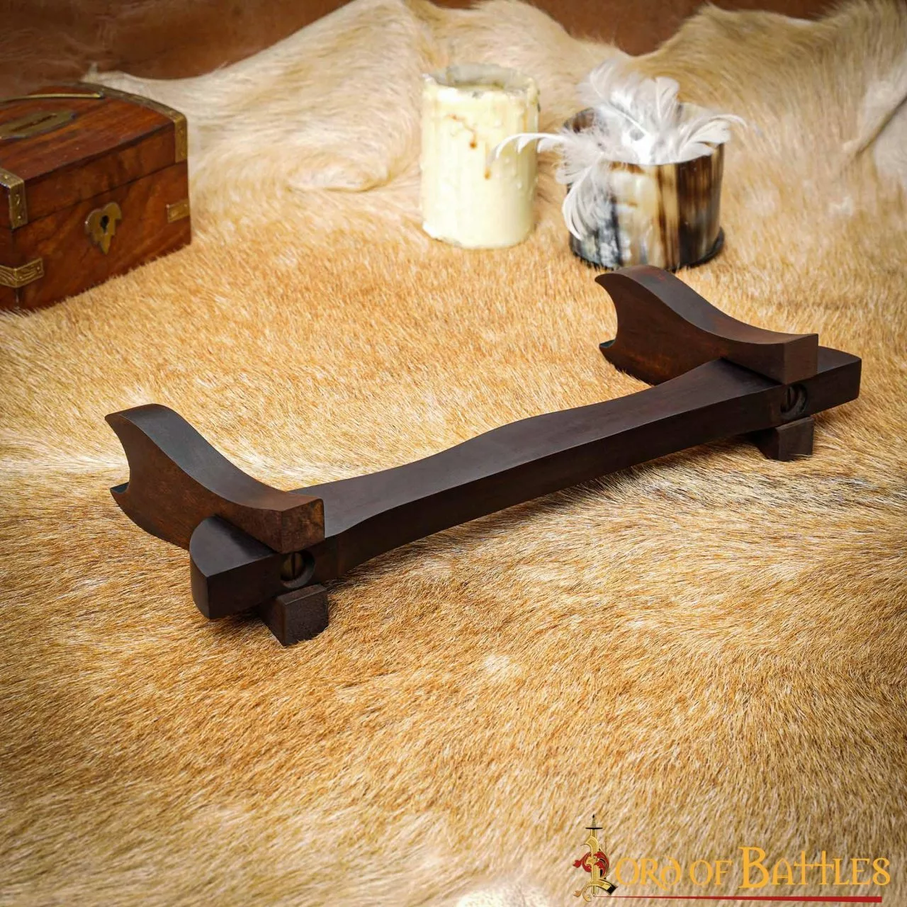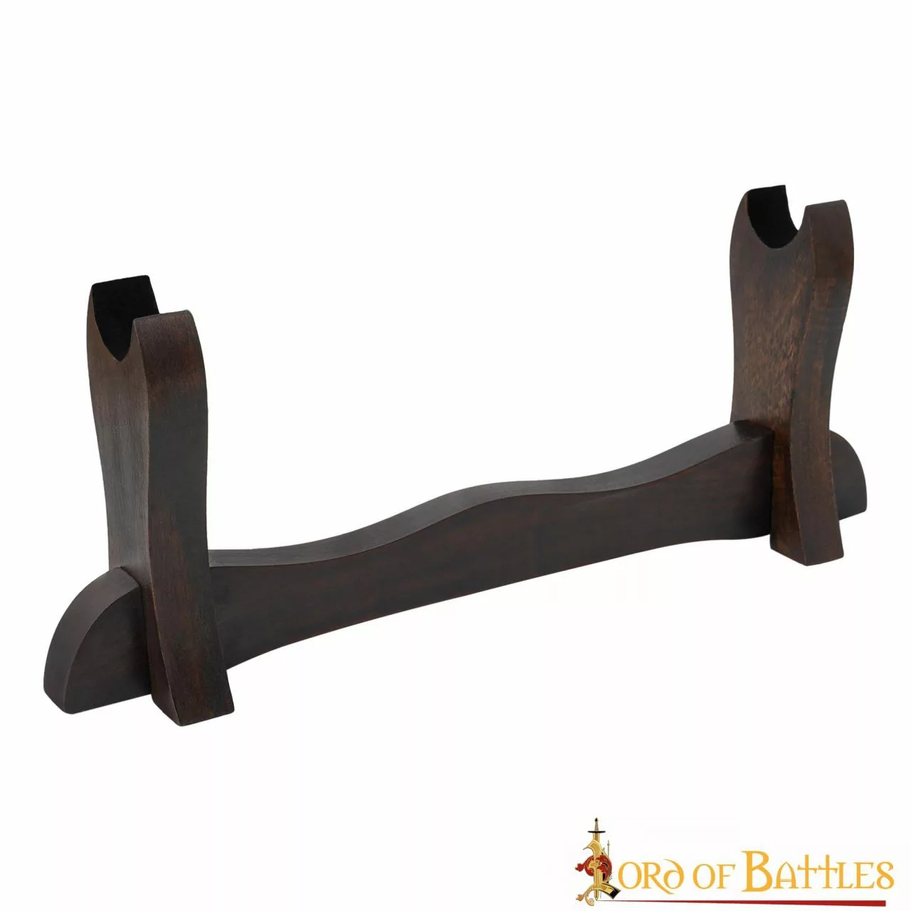Soporte Para Hachas Y Espadas De Madera Auténtica De Un Solo Nivel Hecho A Mano
