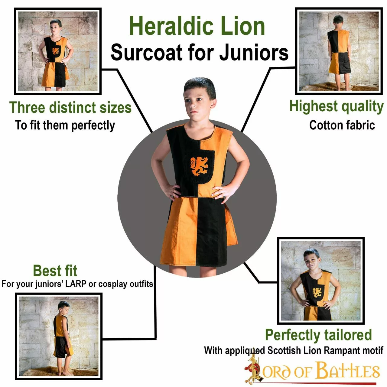 Mientras usted recrea a un caballero de la Edad Media, su hijo le acompaña con esta magnífica capa heráldica hecha especialmente para él. ¡Esto lo convierte en el accesorio perfecto para dar un rico aspecto medieval a cualquier disfraz de principiante!