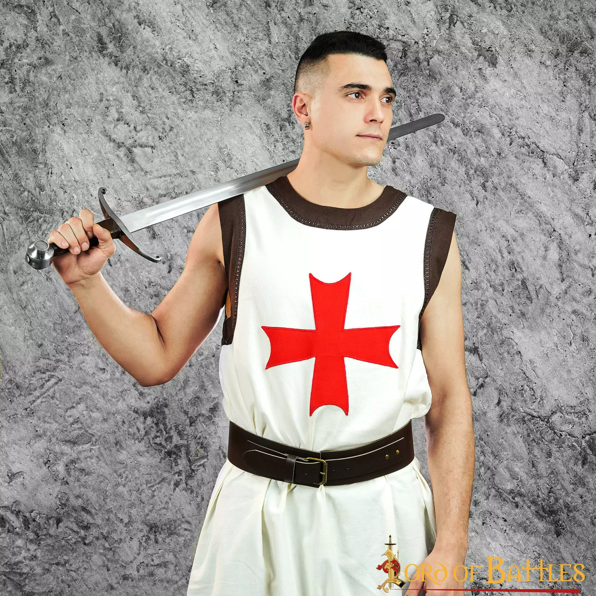 Incluye únicamente el tabardo con la cruz roja bordada en el pecho.