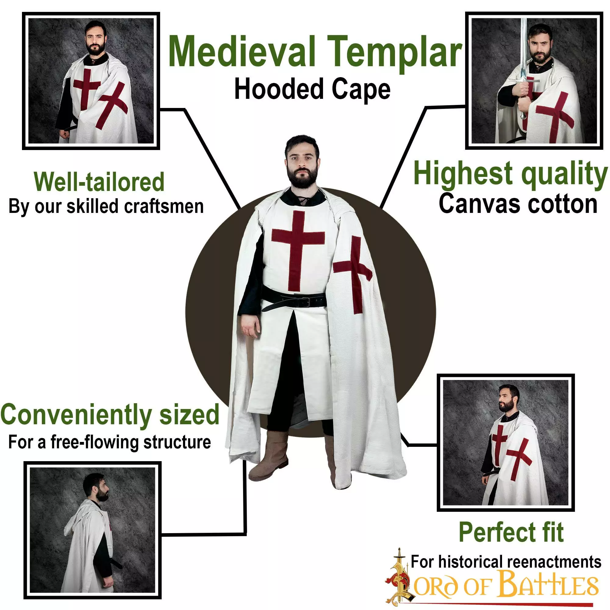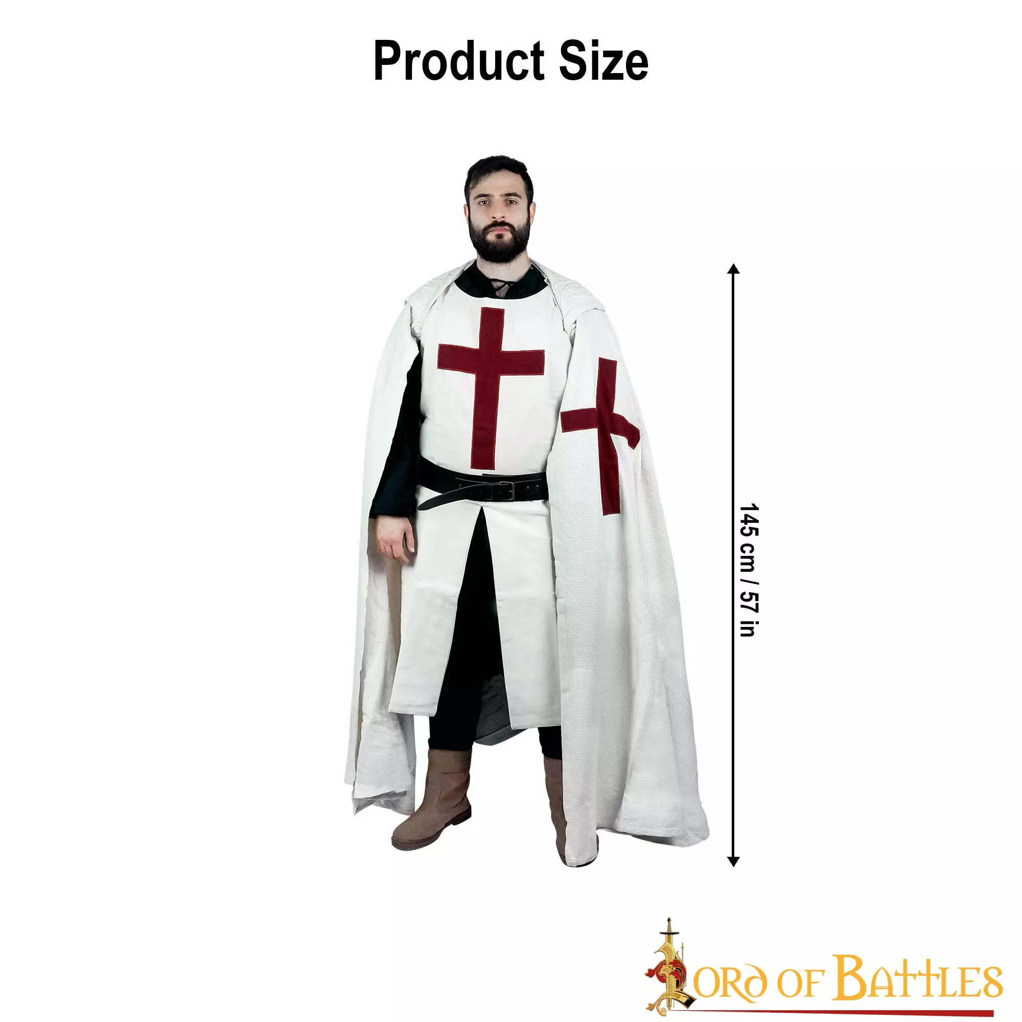 ¿Siempre has soñado con recrear a los famosos caballeros templarios que iban a las Cruzadas en Tierra Santa? Puedes hacerlo fácilmente combinando uno de nuestros clásicos tabardos templarios con esta preciosa capa templaria, ¡y tendrás el atuendo perfecto para recrear al temible guerrero caballero!