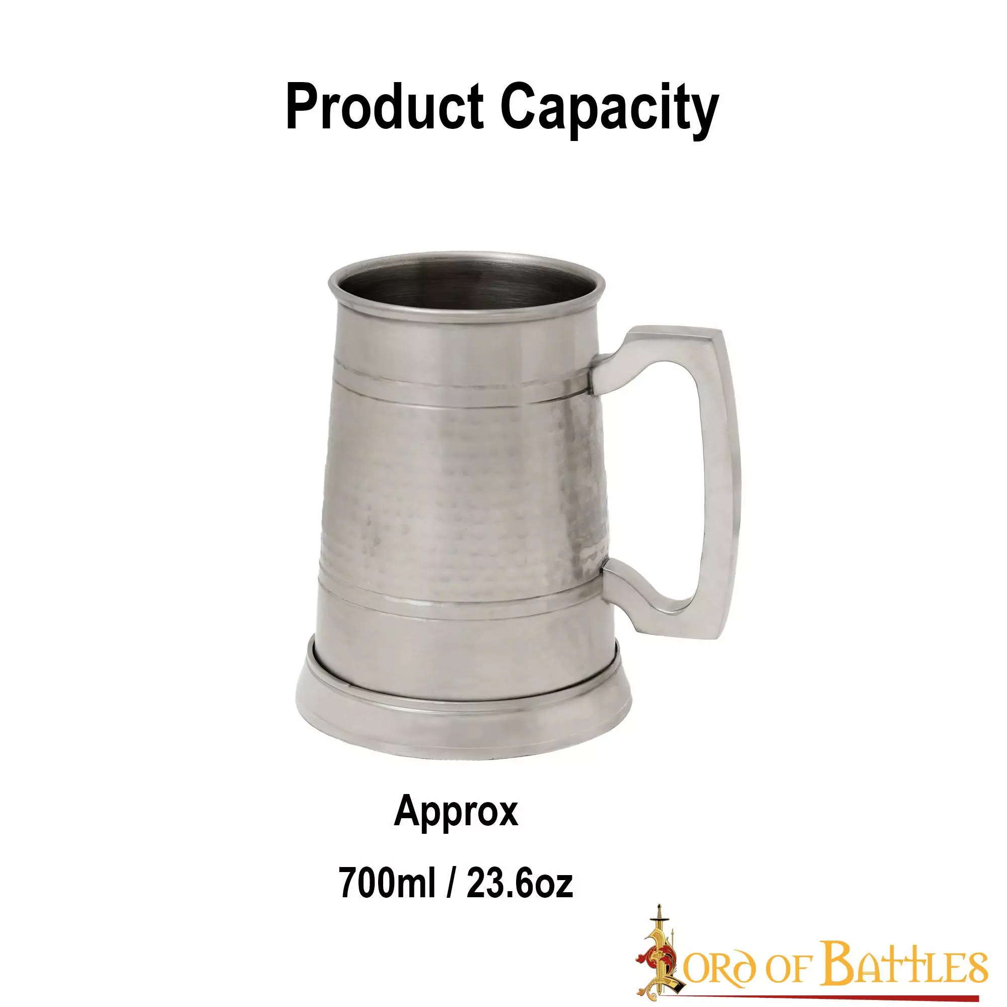 Está HECHO A MANO de resistente ACERO INOXIDABLE, lo que garantiza una larga vida útil. Es adecuada para casi todas las bebidas, por lo que es perfecta para disfrutar de cualquier bebida que te apetezca. Tiene una altura aproximada de 5 pulgadas y una capacidad aproximada de 700 ml.