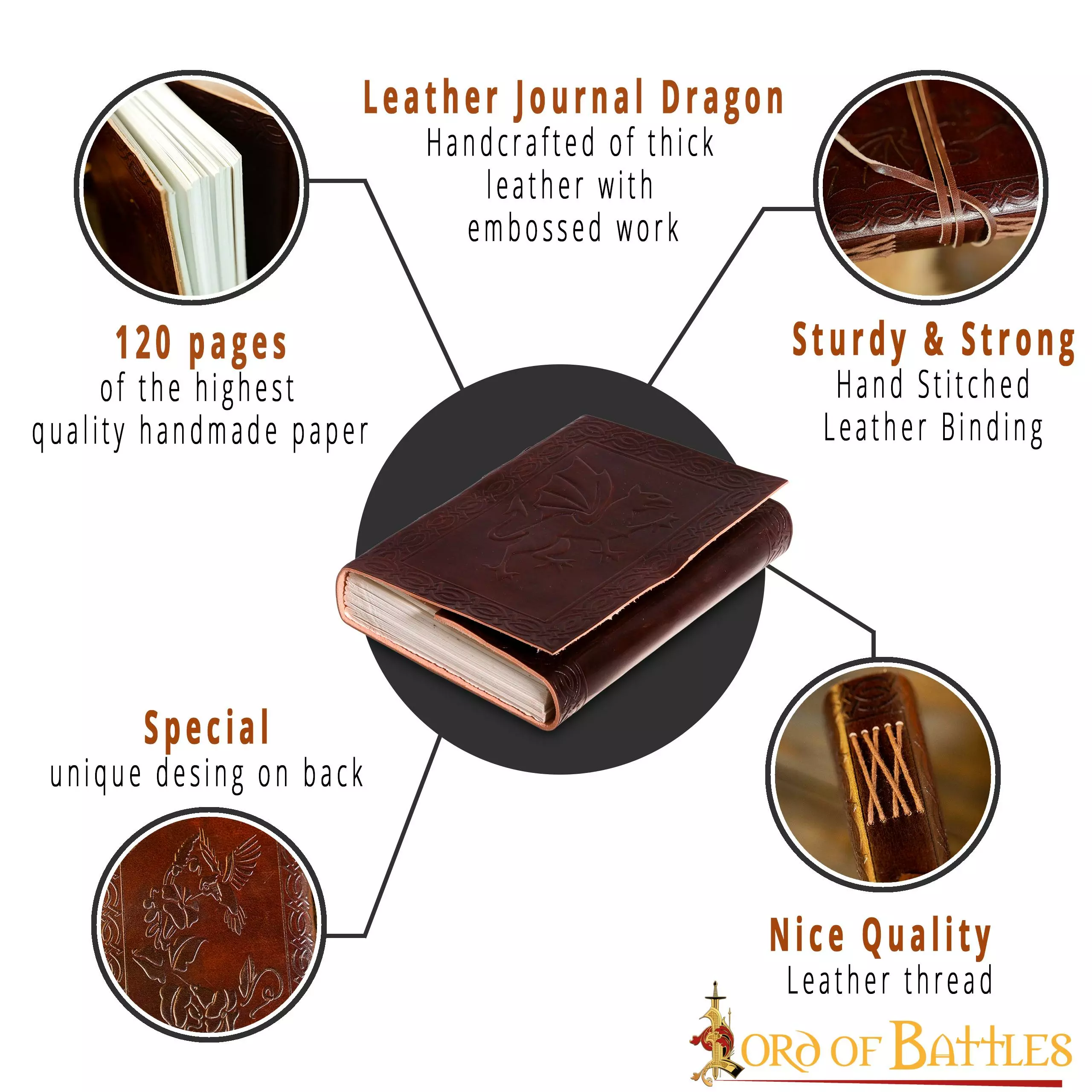 Haga su crónica, perfeccione sus habilidades caligráficas, o incluso manifieste a través de un diario, este diario de cuero clásico con un hermoso diseño de dragón en relieve, es un artículo imprescindible para usted. Créenos, ¡estás a sólo una pluma estilográfica y este diario de una experiencia de escritura histórica!