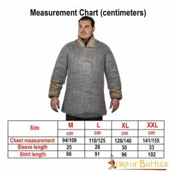 Anillo Plano Cota De Malla Medieval Media Manga Camisa Haubergeon, Cuña Remachada, DI 9 Mm, Natural