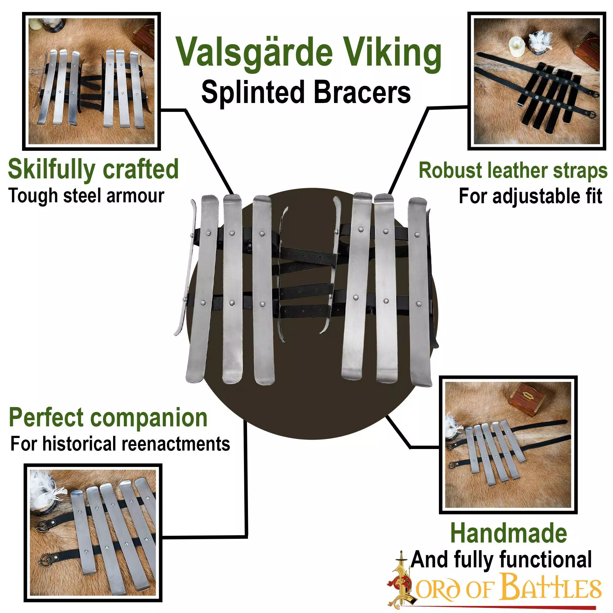 ¿Siempre has querido mejorar tu atuendo de batalla vikingo con una protección adecuada para los brazos? Estos robustos brazaletes entablillados vikingos pueden ser exactamente lo que estás buscando. Para diseñar el modelo que aquí se presenta, nos hemos inspirado libremente en los hallazgos arqueológicos de la tumba 8 de Valsgärde, enterramiento de barco (generalmente datada en el siglo VII, es decir, época anterior a la Vendel vikinga).