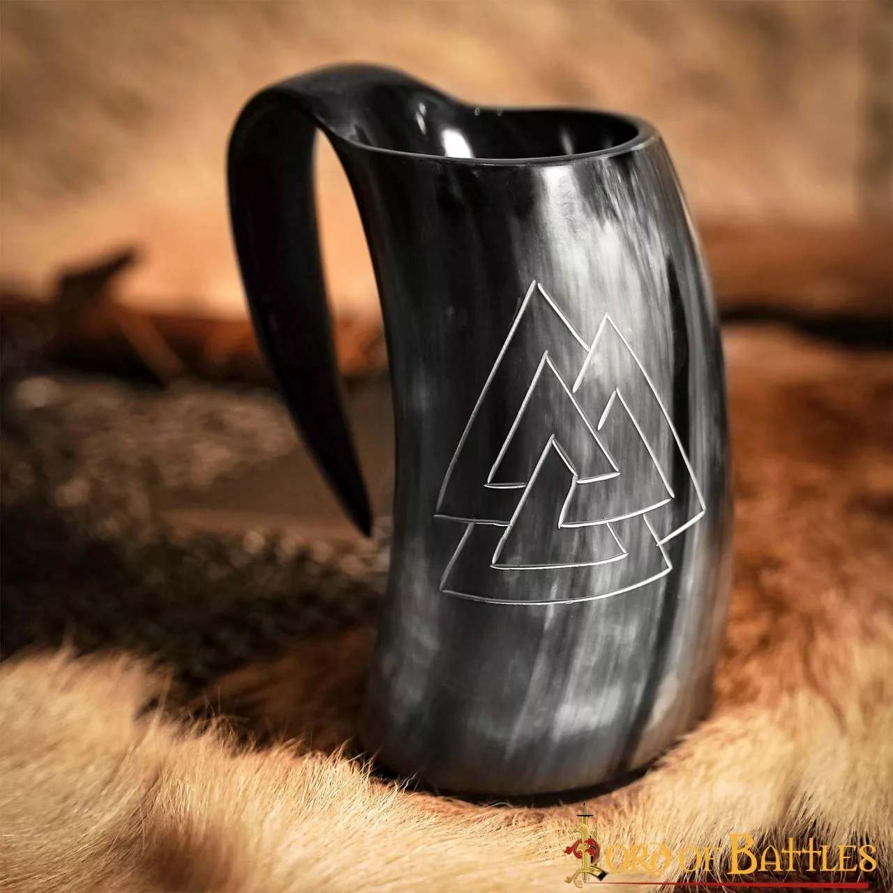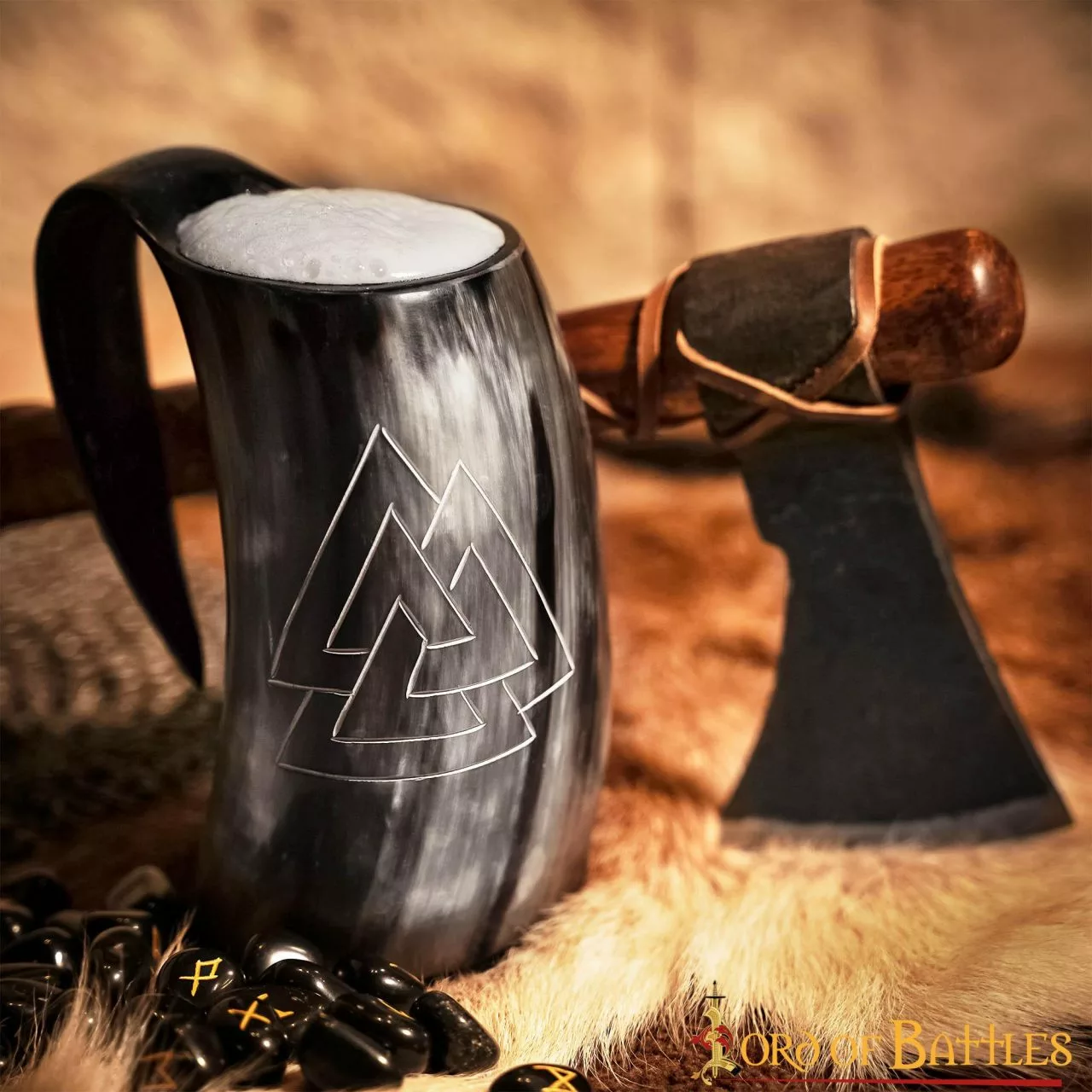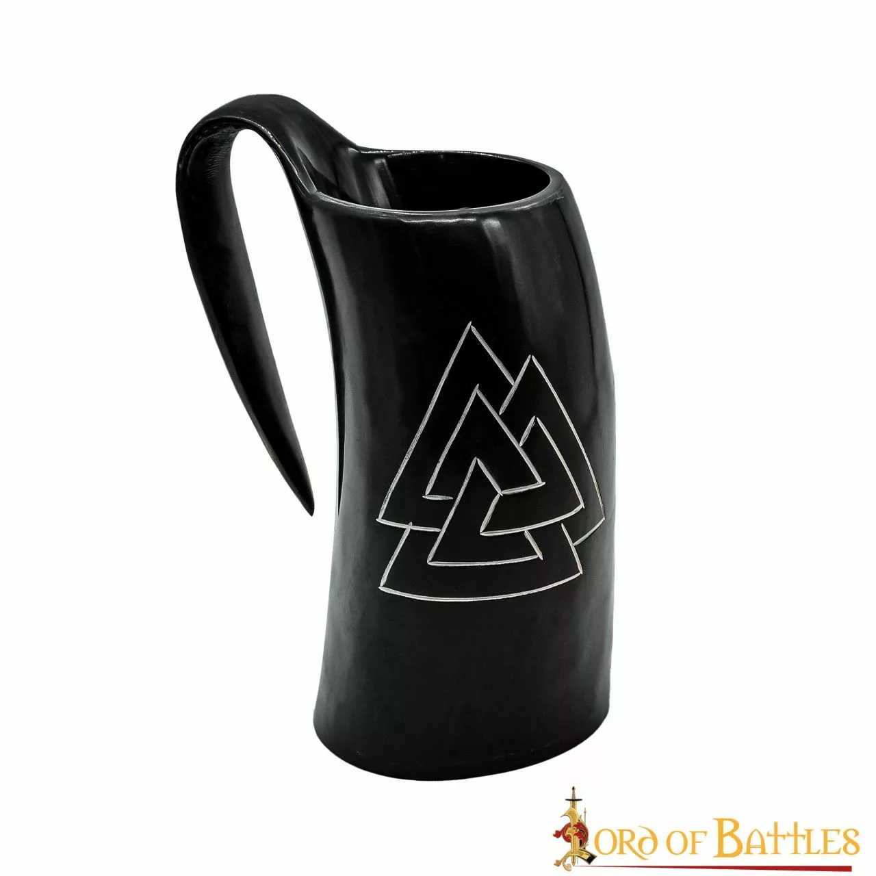 Viking Drinking Horn Tankard Con Diseño De Valknut Vikingo Tallado A Mano