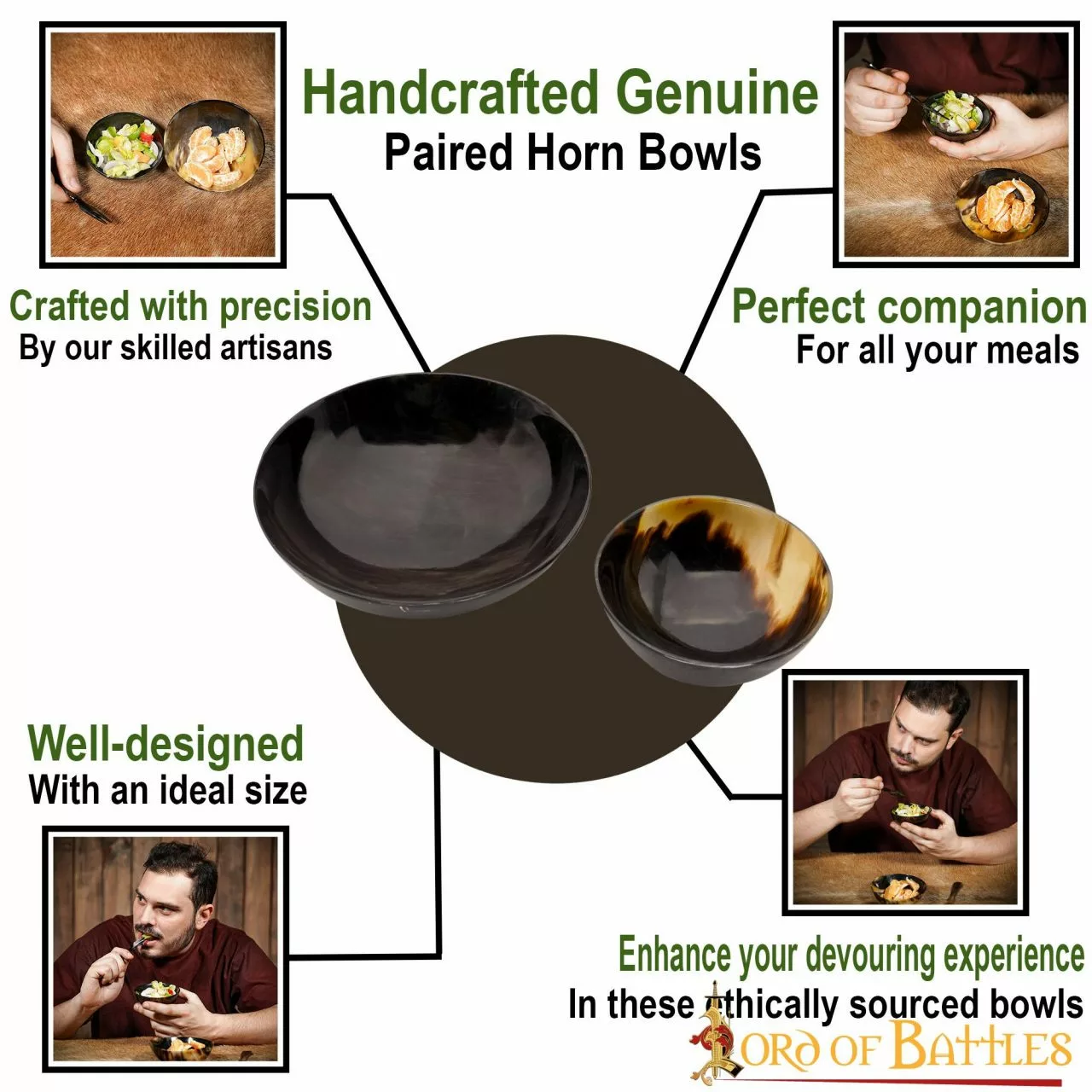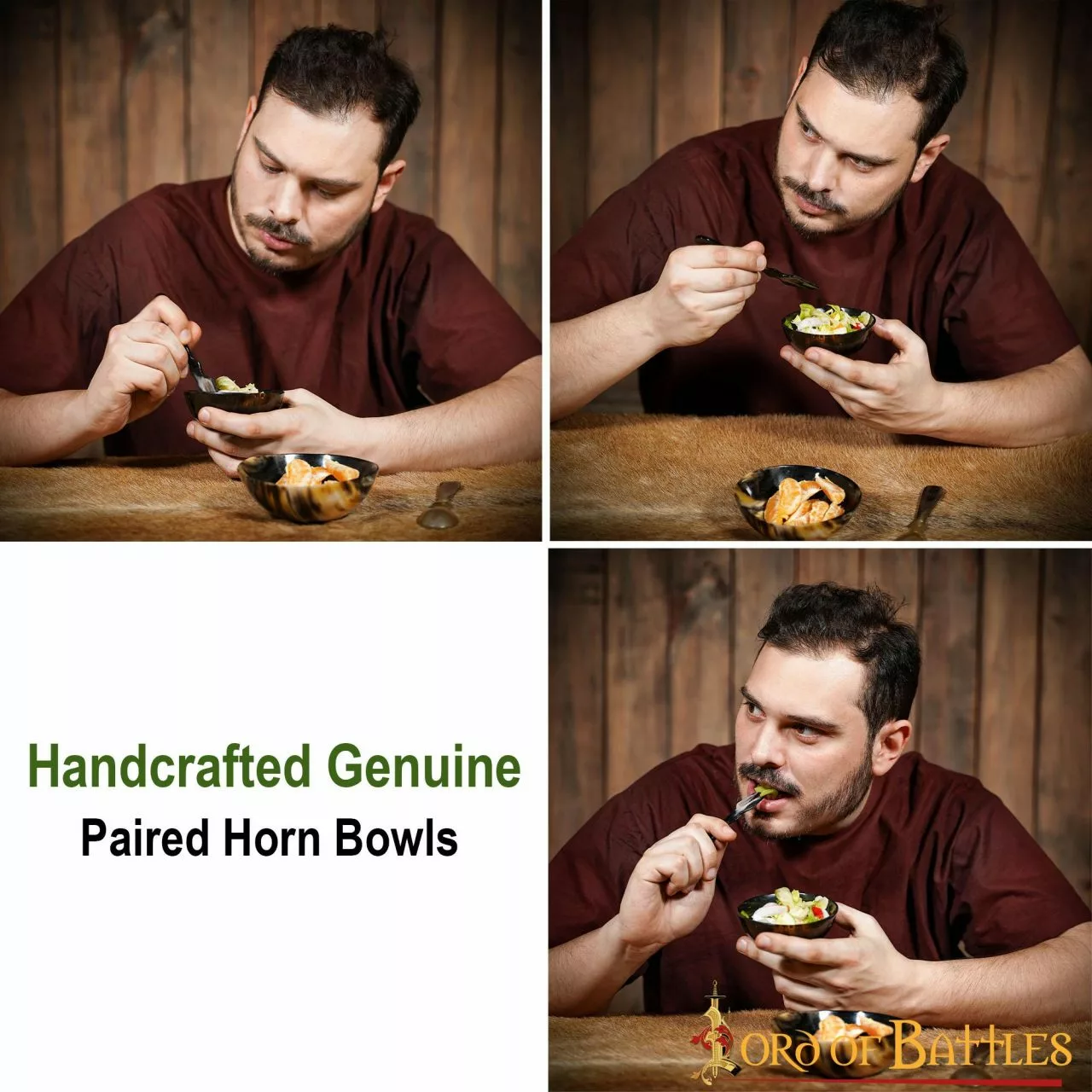 Este juego de tres está hábilmente hecho a mano por nuestros artesanos a partir de CUERNO DE BUEY GENUINO que lo hace robusto y ofrece longevidad. Los tres cuencos tienen una capacidad de 200 ml, 300 ml y 400 ml. Por favor, evite los lavavajillas. Antes de usarlos, lávelos con agua corriente. Para una mayor duración, trátelos con cera de abeja después de cada uso. NOTA: Todos estos cuencos de cuerno pueden parecerse, pero difieren ligeramente en sus dimensiones debido a su origen natural; se deterioran con el tiempo y, por tanto, pueden aparecer grietas.